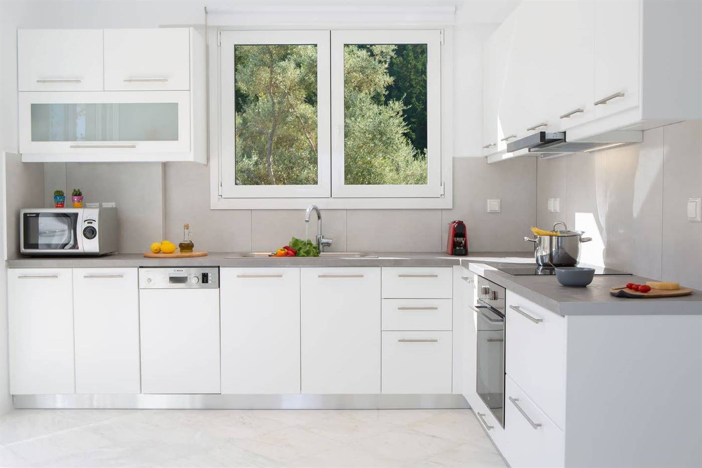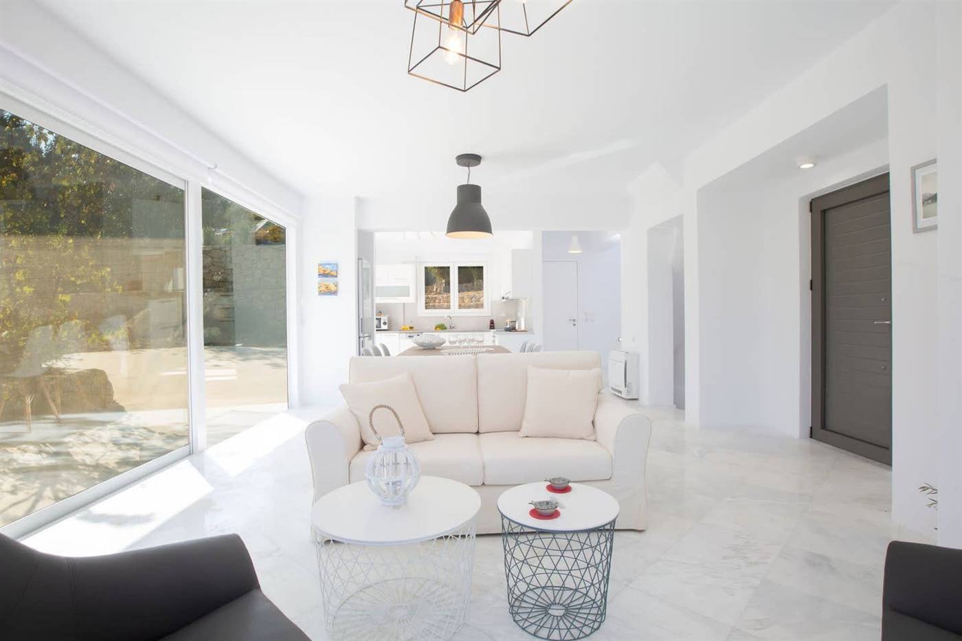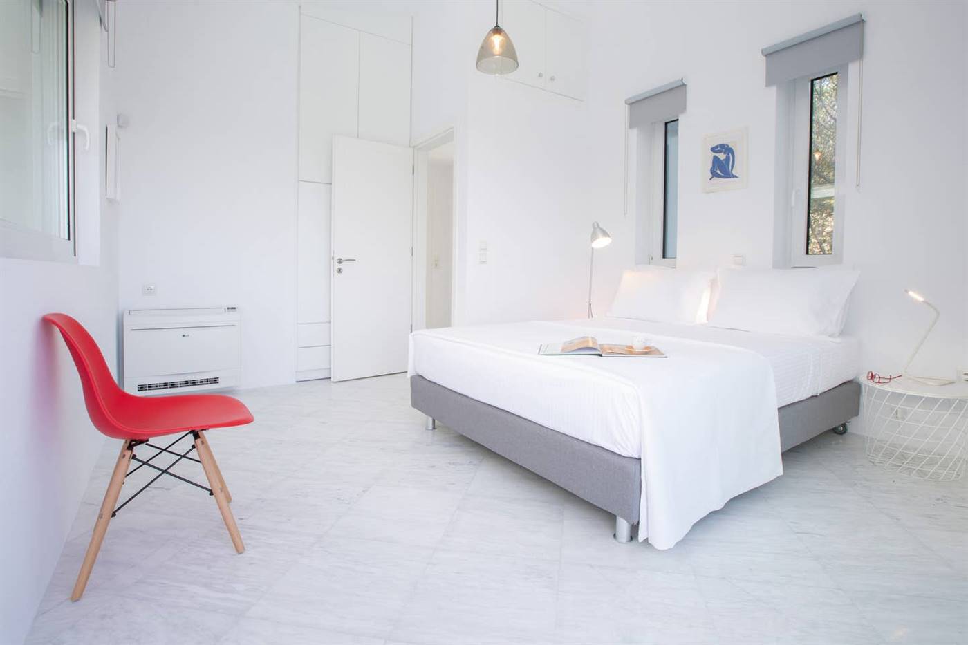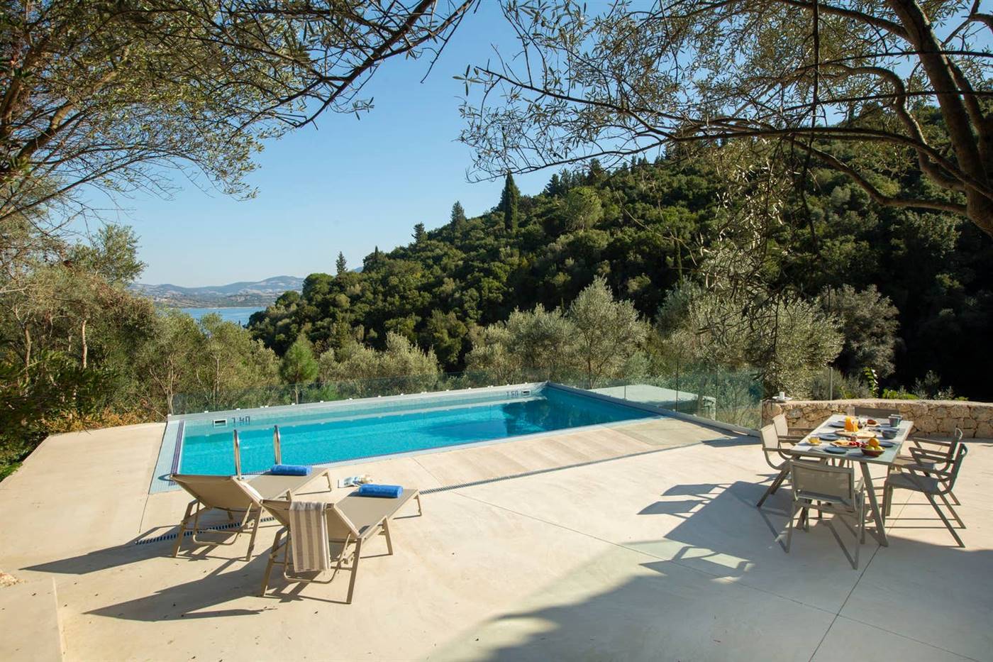 Le due case che si trovano in una zona conosciuta come "paradiso" per gli abitanti del luogo, sono chiamati Anticlea e Euriclea, dalla madre e dell'infermiera dell'eroe omerico. La zona è circondata dal verde, con una vista spettacolare sul canale di mare che separa l'isola dalla terra opposto di Acarnania. Nella villa si può godere il massimo relax avendo un tè freddo nel balcone o un drink a bordo piscina nel pomeriggio e lo sguardo al mare come il tramonto cambia la gamma di colori nel cielo pomeridiano. La villa si combina semplicità e lusso, situata sulla cima di una collina, con vista sul mare! Entrambe le case sono state progettate con i migliori materiali e nel rispetto per l'ambiente. Grazie al nostro amore per l'ambiente, abbiamo conservato l'ambiente naturale, in modo da l'ospite può godere ed apprezzare le bellezze naturali della Grecia. Un'altra caratteristica dell'isola di Lefkada è ulivi verde-argento unici che dominano i dintorni delle ville con la loro presenza. Abbiamo anche conservato altri alberi locali come piante di mirto, Giuda alberi ecc Le case sono a soli 400 metri dalla spiaggia più vicina e il villaggio di Lygia dove è possibile fare la spesa della visita di una taverna di pesce in riva al mare. La distanza dalla città di Lefkada è a soli 5 km. La rete stradale dell'isola offre la vicinanza di alcune delle più belle e famose spiagge del Mediterraneo. In ogni villa, al piano superiore ci sono 2 camere da letto con una splendida vista sul mare e un balcone d'angolo che serve gli ospiti di entrambe le camere.