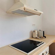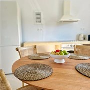 All'interno, due accoglienti camere da letto, un bagno luminoso e una cucina che fonde il fascino dell'isola con tocchi vintage. Sorseggiate un caffè vicino alla finestra o goditevi i tramonti mozzafiato sul balcone.