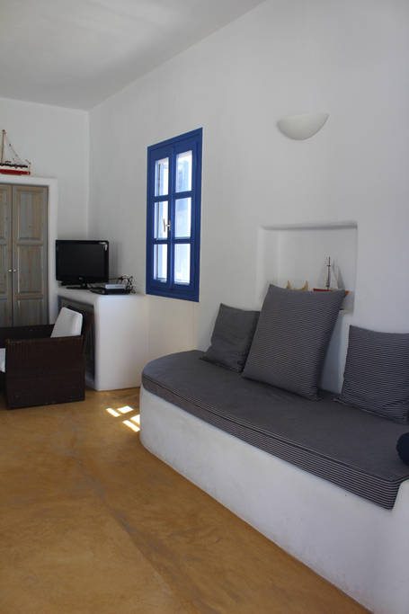 passeggiata di 100 metri mentre la spiaggia di Platis Gialos dista solamente ad 1,5 km percorribile a piedi, in scooter, in auto, bus o con il taxi locale.