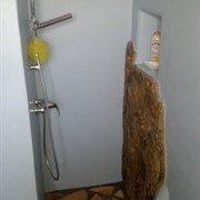 La dotazione della casa include un tavolo grande da esterno con 6 sedute, un tavolino con due sedie, due sdraio, 1 grande seduta solarium, stendibiancheria ed un’area per la doccia esterna.