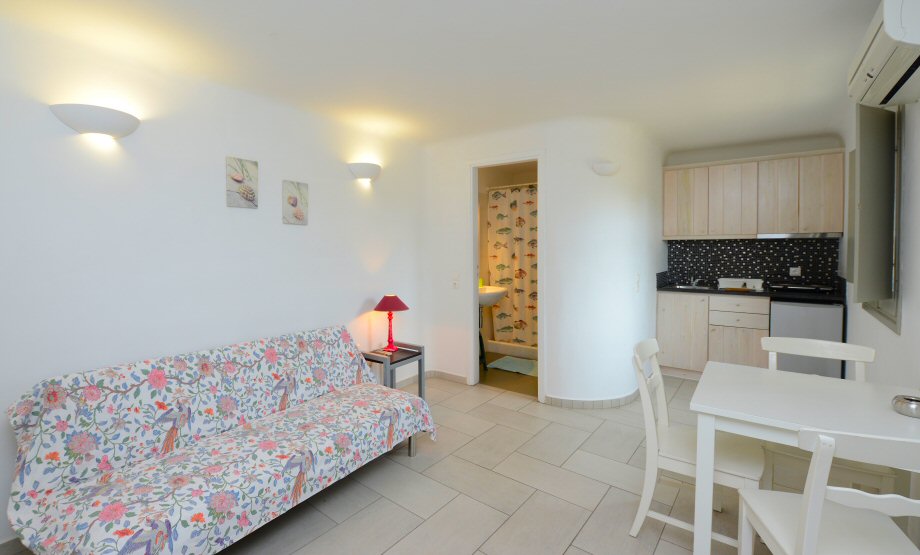 - 1 bilocale per 2/3 persone con una camera da letto, soggiorno con 1 letto e cucina, bagno e terrazzo con vista mare.