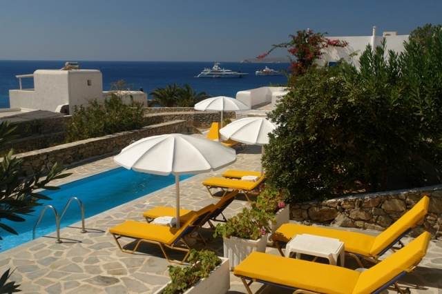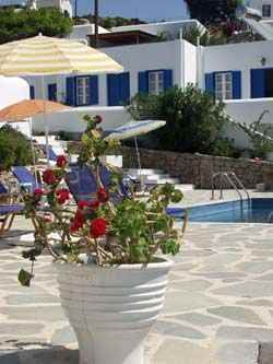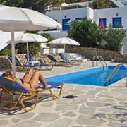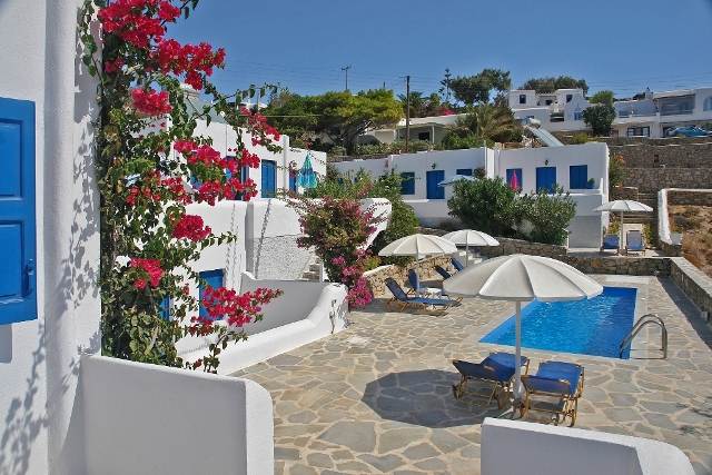 A soli 100 metri dalla dorata e famosa spiaggia di Platis Yialos servito da un regolare servizio di autobus per raggiungere le spiagge piu' belle ed il centro della cittandina di Mykonos, il residence tipico edificio dell'isola ubicato su una collina offre appartamenti con una grande terrazza che si affaccia sullo spettacolare Mare Egeo. Sono tutti forniti di un piccolo angolo cottura completo di piastra calda, minifrigo, tv, aria condizionata, cassetta di sicurezza, bagno privato, asciugacapelli. Il residente ha una piscina privata, il parcheggio gratuito e la connessione wi-fi anch'essa gratuita. Le pulizie vengono effettuate tutti i giorni. Taverne, pub, bar sulla spiaggia , mini market raggiungibili a piedi in 15 minuti.