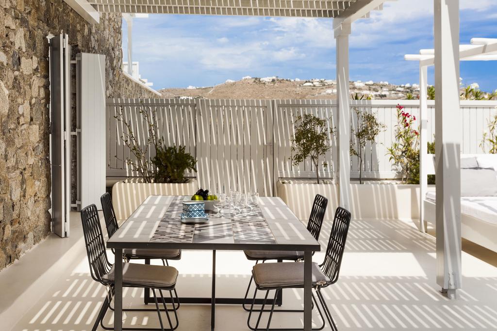 Ubicato a soli 4 km dalla cosmopolita città di Mykonos e dal suo aeroporto, il complesso è completamente riparato dai venti dell'isola e dista solamente 1,5 km da Ornos, dove troverete numerosi negozi, ristoranti e la famosa spiaggia.