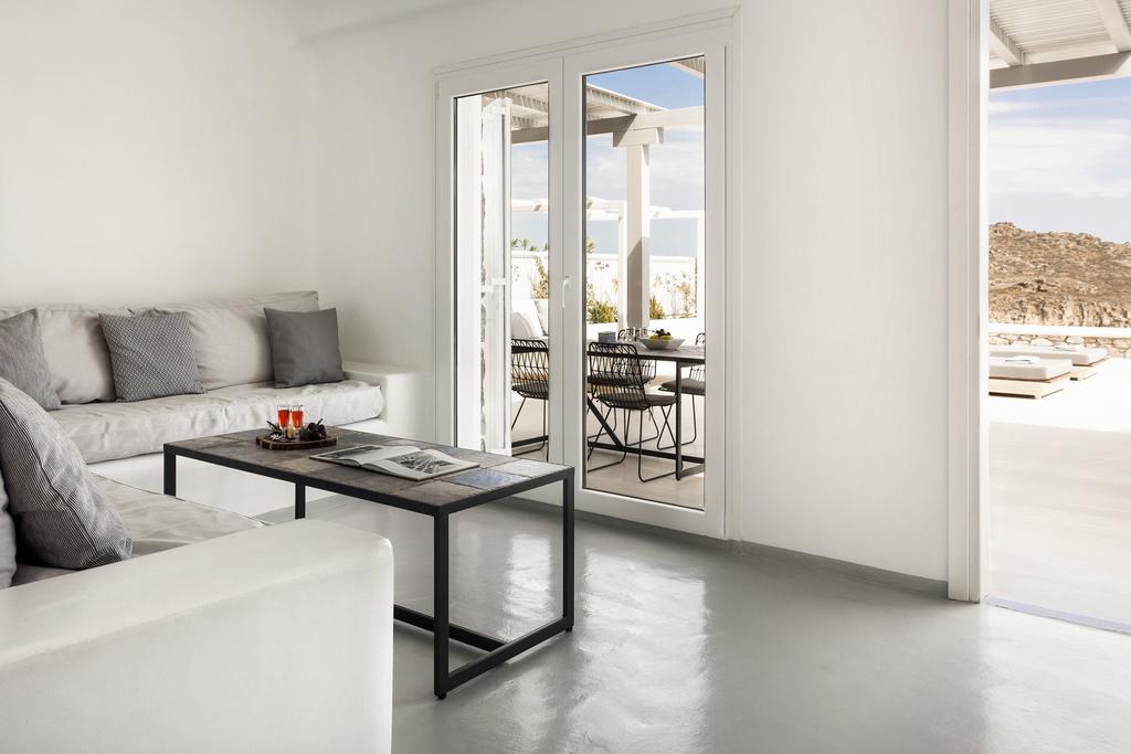Nelle ville della Casa Del Mar Mykonos Seaside Resort potrete apprezzare i freschi pavimenti in pietra e gli arredi minimalisti. Inoltre in tutte le sistemazioni troverete 2 o 3 camere da letto, un'area cucina e un soggiorno realizzati in stile elegante, un'ampia terrazza privata con vista panoramica, una TV e la connessione WiFi gratuita. Su richiesta è disponibile un lettore CD/DVD. All'arrivo vi sarà fornito un telefono cellulare per agevolare le comunicazioni con la reception.