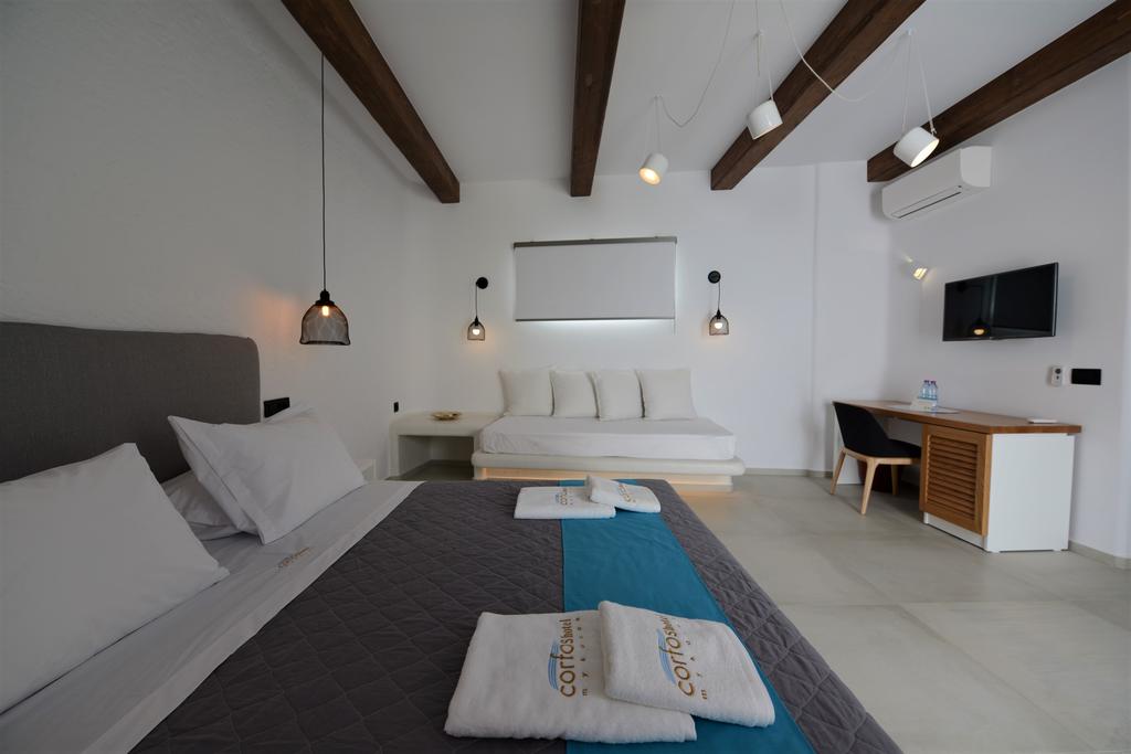 Situato a soli 150 metri dalla spiaggia di Corfos, a 200 metri dalla spiaggia di Ornos e a 2,5 km dalla città cosmopolita di Mykonos, il Corfos offre camere in stile cicladico con aria condizionata e WiFi gratuito, e un'ampia piscina all'aperto con acqua di mare.