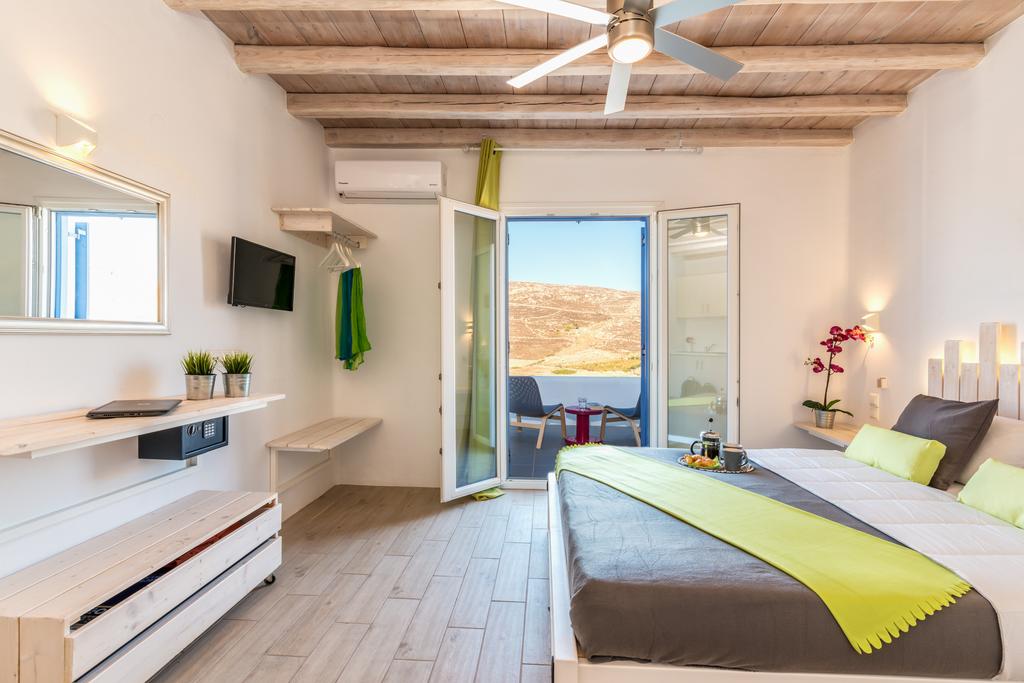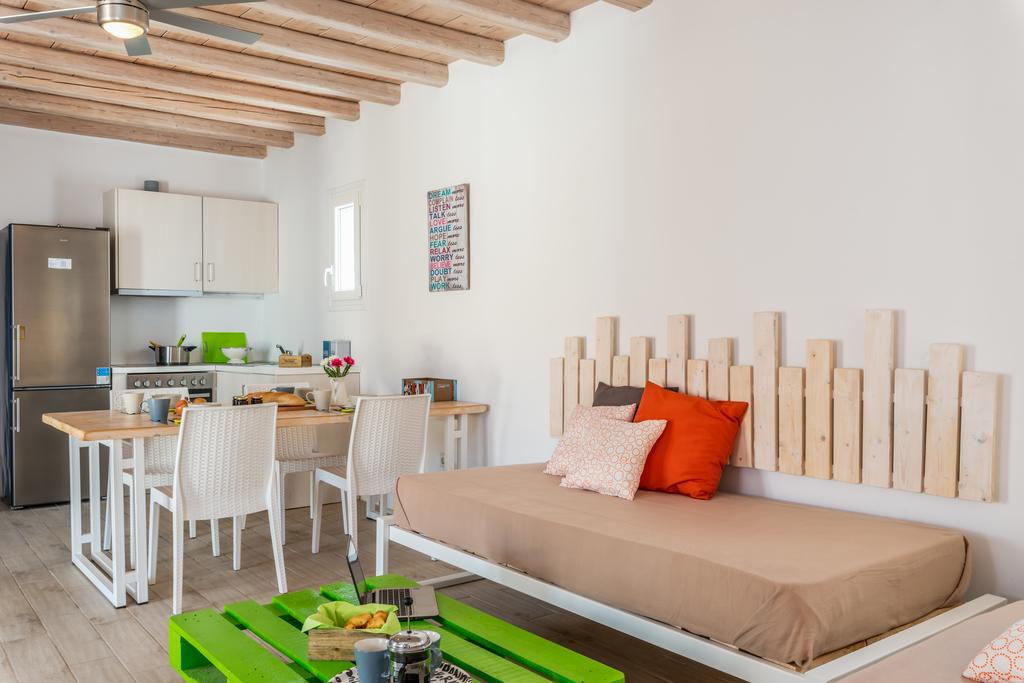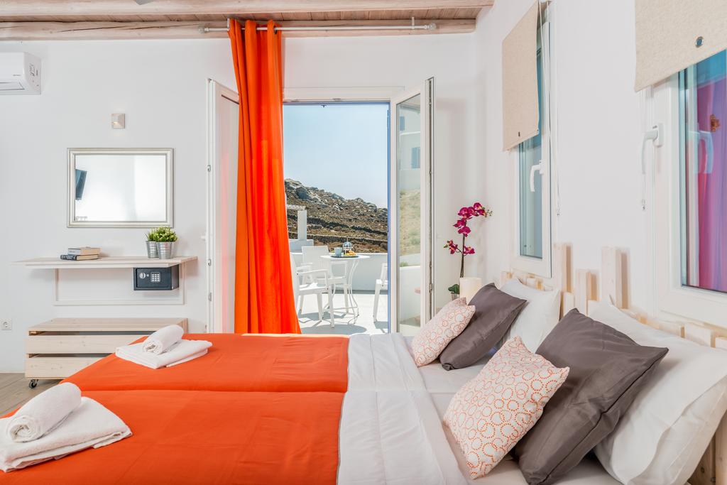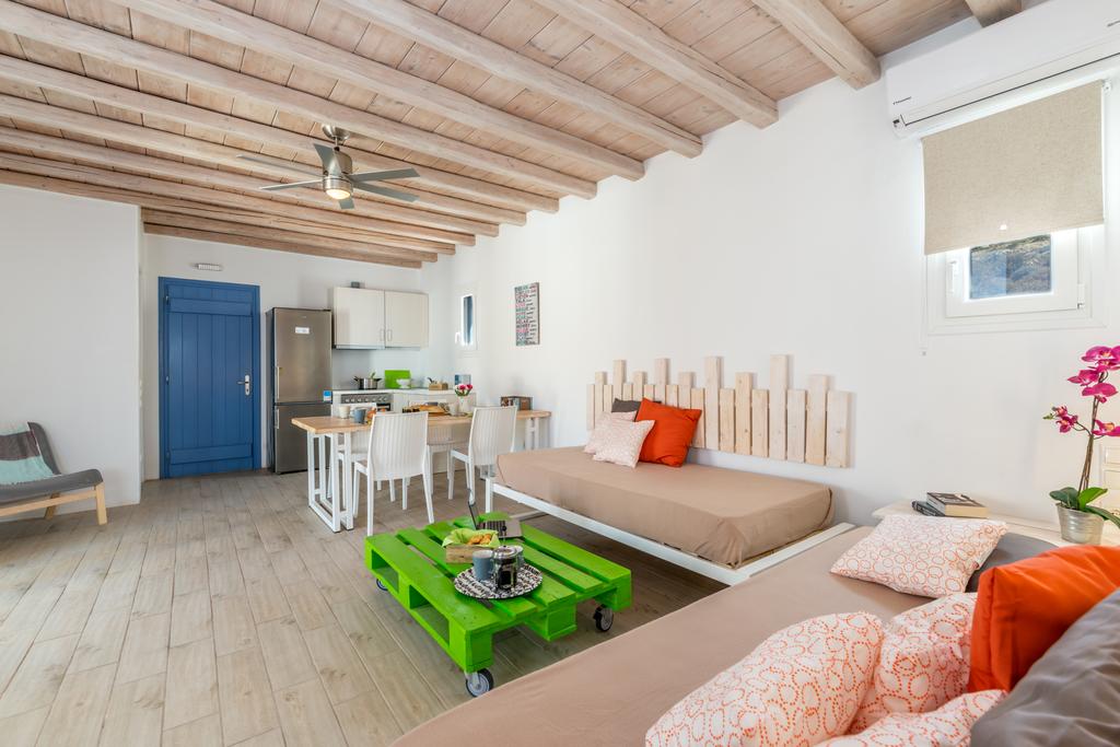 Gli alloggi sono inoltre dotati di aria condizionata, WiFi gratis, TV e veranda spaziosa. Durante il soggiorno potrete godervi la vostra privacy e il sole di Mykonos, e rivolgervi ai proprietari per noleggiare auto e moto.