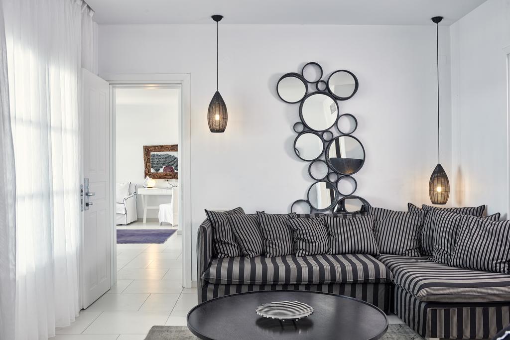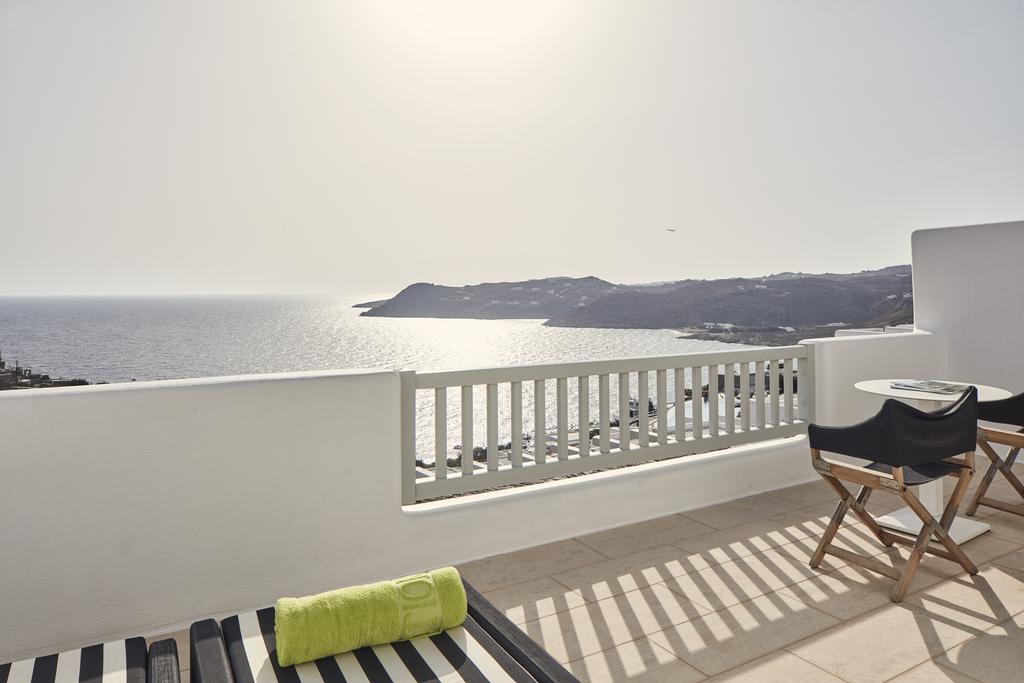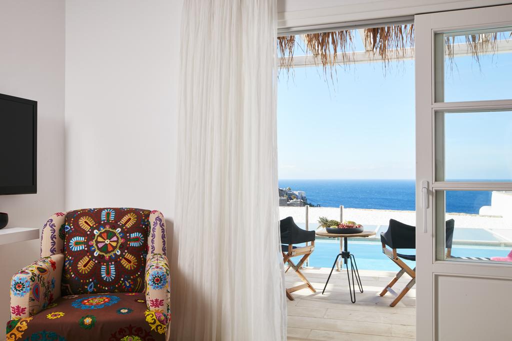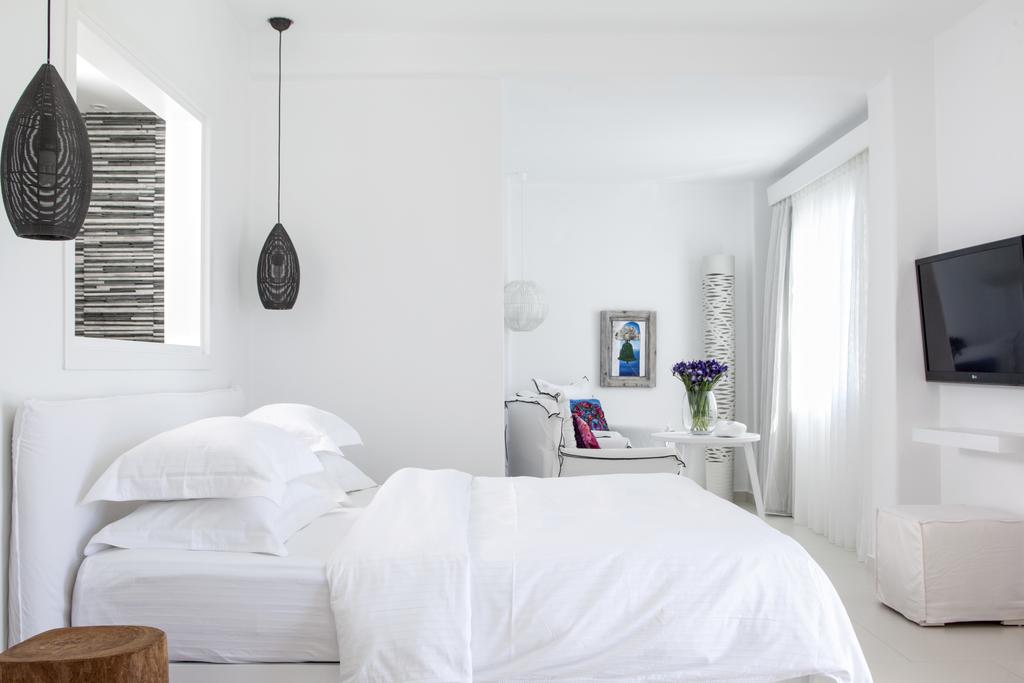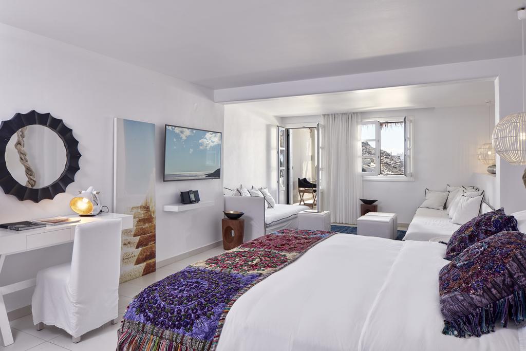 Caratterizzate da interni eleganti, dettagli fatti a mano e tonalità delicate, le sistemazioni del Myconian godono di una vista libera sul mare e includono un'ampia zona giorno, un bagno completo di doccia con getto a pioggia, una TV 3D a schermo piatto e un lettore per DVD/MP3.