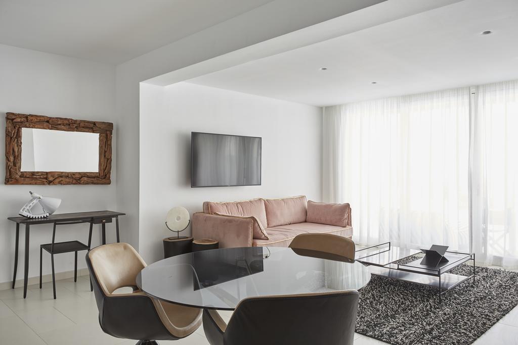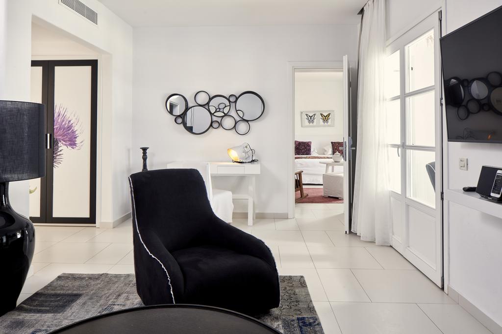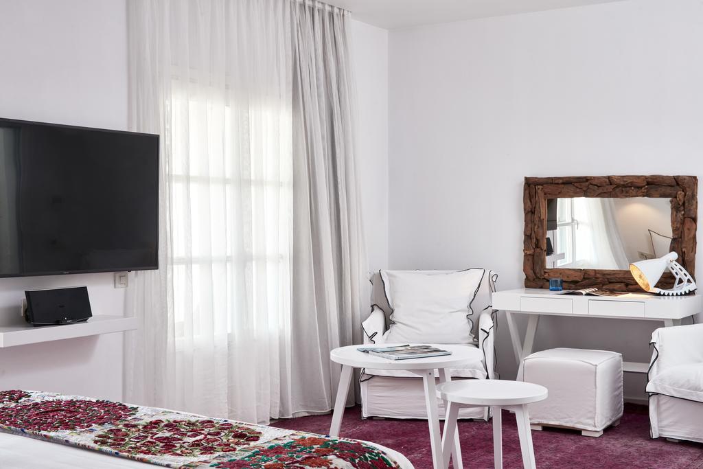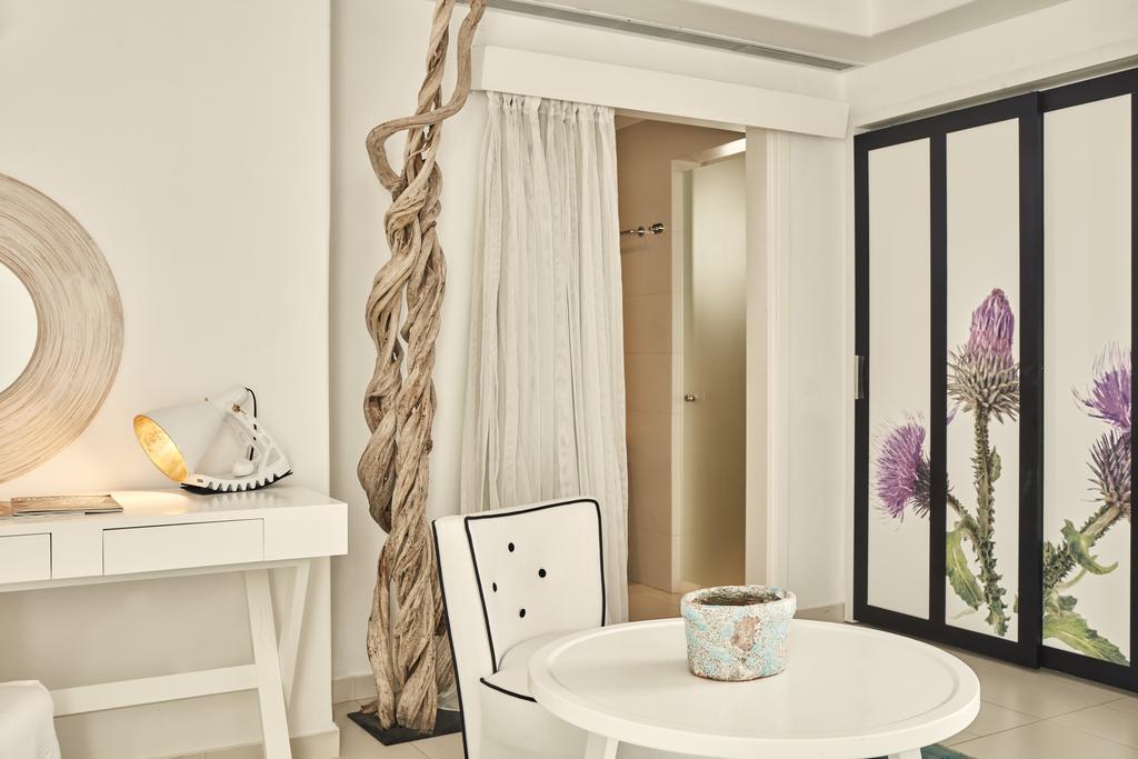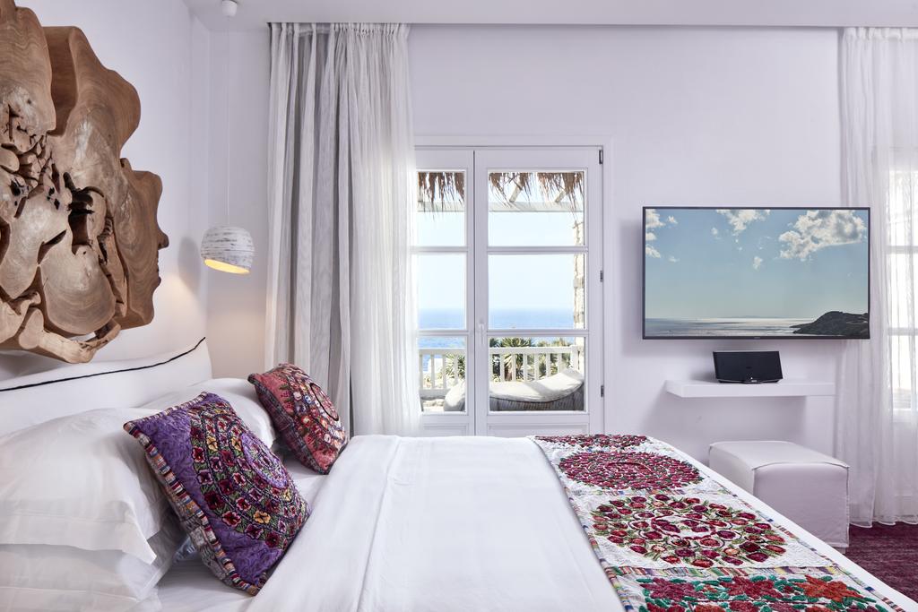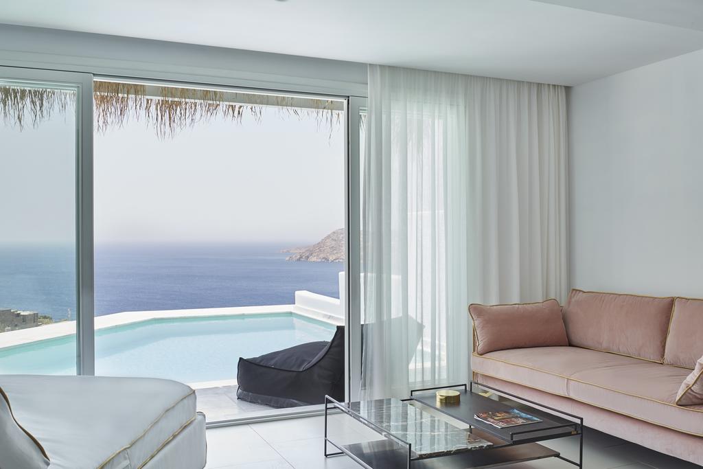 Caratterizzate da interni eleganti, dettagli fatti a mano e tonalità delicate, le sistemazioni del Myconian godono di una vista libera sul mare e includono un'ampia zona giorno, un bagno completo di doccia con getto a pioggia, una TV 3D a schermo piatto e un lettore per DVD/MP3.
