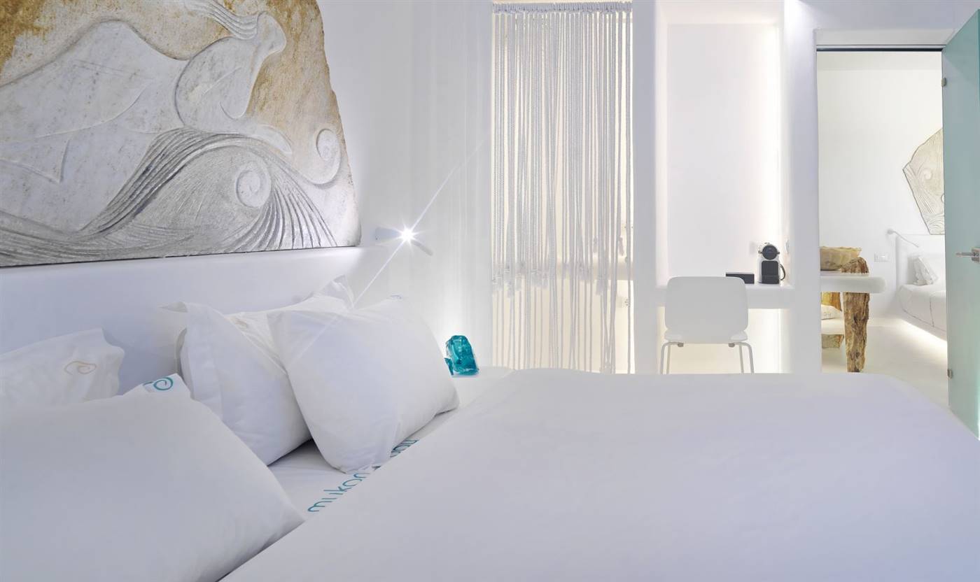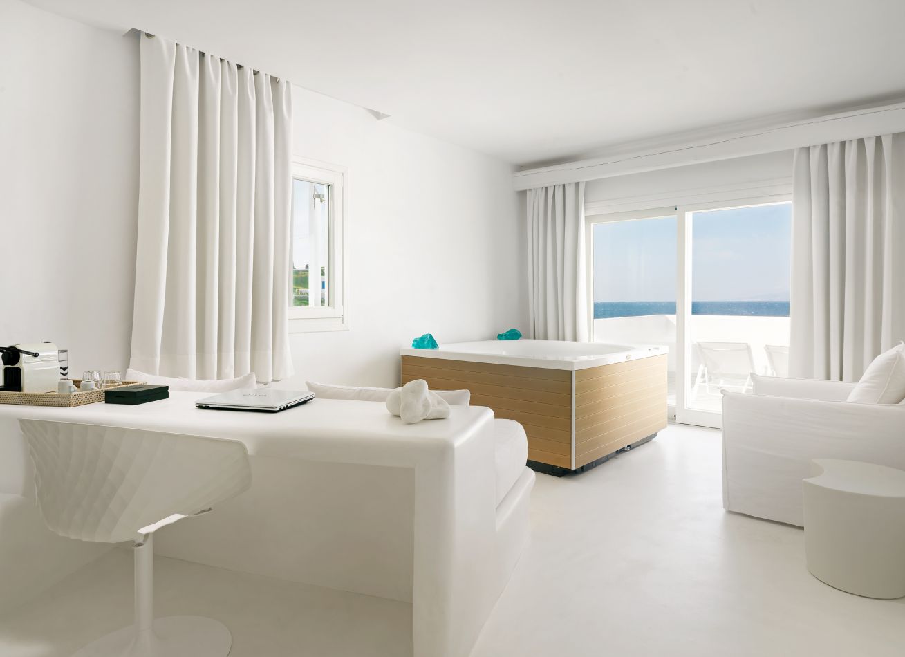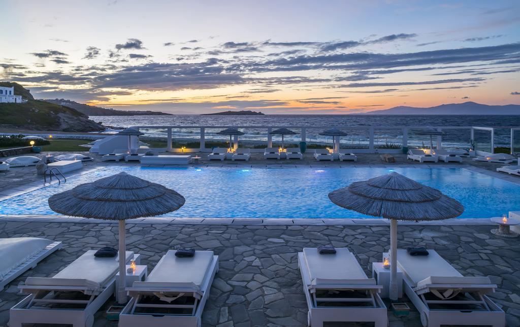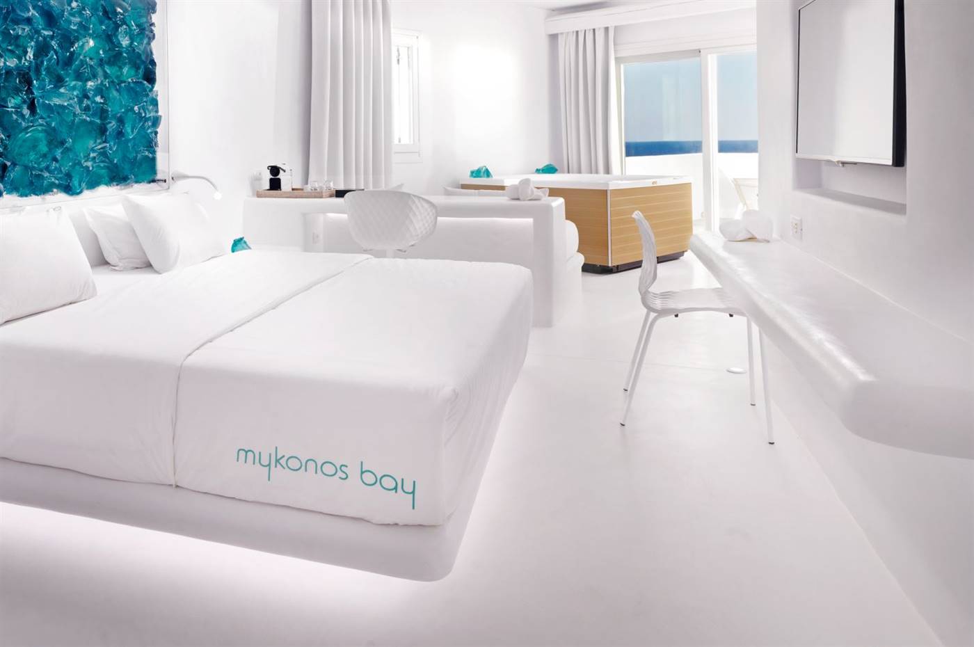 Hotel di design situato direttamente sulla spiaggia di Megali Ammos, a soli 300 metri dalla città di Mykonos, il Mykonos Bay Resort & Villas vanta una grande piscina con viste sul tramonto, sul mare e sui mulini a vento che caratterizzano l'isola.