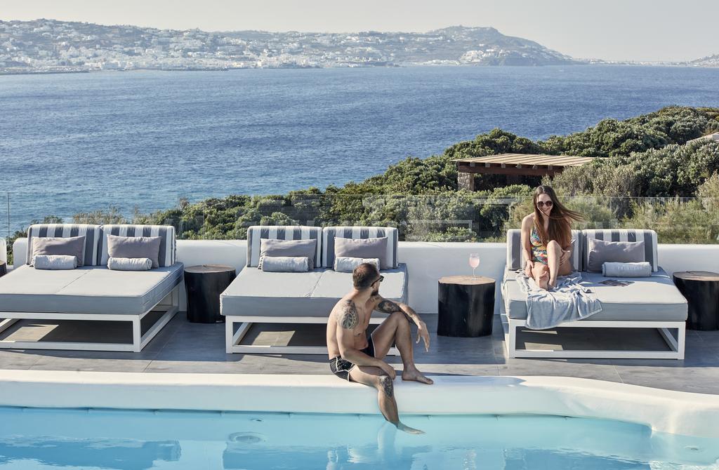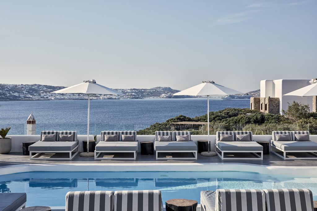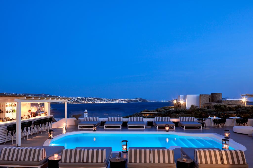 Al mattino potrete gustare una prima colazione alla carta presso la zona ristorazione e nell'area della piscina, mentre il ristorante serve una moderna cucina greca in un ambiente romantico a bordo piscina. Presso il bar, anch'esso ubicato a bordo vasca, avrete modo di sorseggiare un drink ammirando la vista su Mykonos e sull'isola di Delos.