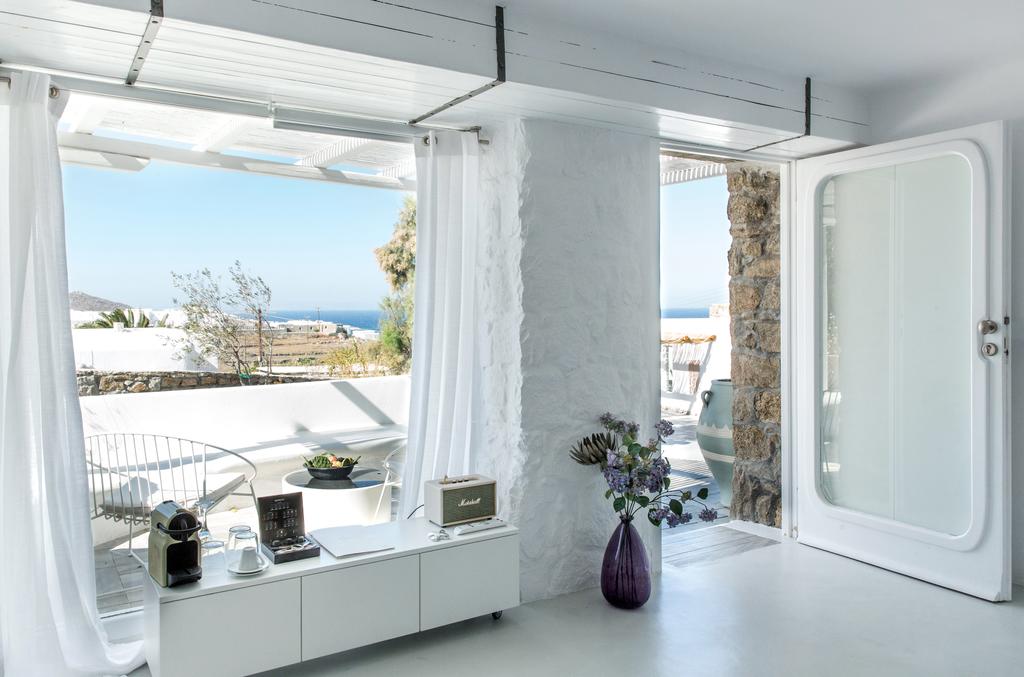 Con il loro arredamento personalizzato, le spaziose sistemazioni dell'Ostraco Suites rispecchiano l'estetica tipica dell'isola di Mykonos, con pareti imbiancate a calce, mobili eleganti e terrazze soleggiate e lastricate in pietra.