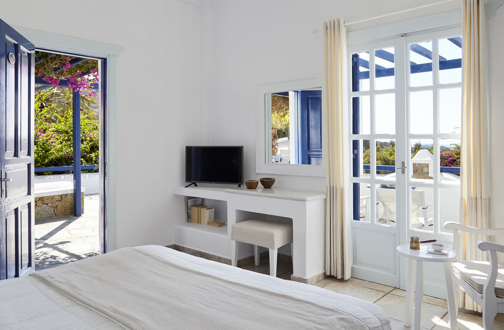 Costruito in autentico stile cicladico con tradizionali pareti bianche e persiane blu in legno, e circondato da un ambiente naturale, questo hotel si trova a breve distanza dalla spiaggia e dalla città, e offre la Wi-Fi gratuita in tutta la struttura.