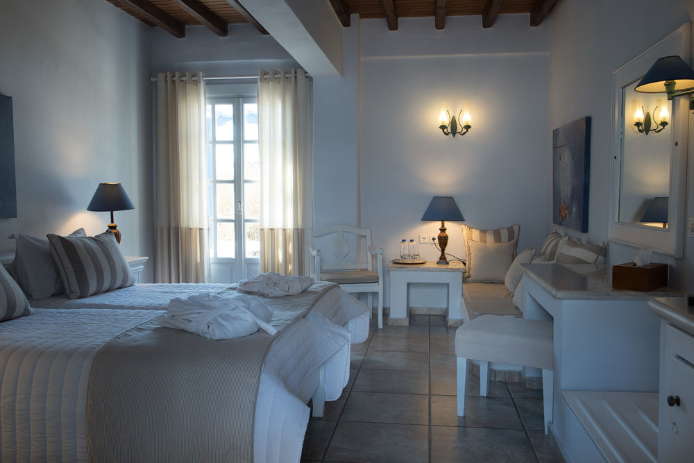 Dall'hotel potrete prendere un autobus per la città, che vanta numerosi locali notturni, centri commerciali e caffetterie tradizionali. Sono presenti anche semplici collegamenti in traghetto e aereo con le isole vicine, in particolare con Delo, la Grecia continentale e le spiagge locali. La struttura vanta un'ampia piscina, un raffinato ristorante con viste spettacolari sul mare e servizi per riunioni.