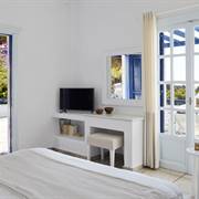 Questo sontuoso hotel è composto da edifici indipendenti, dal design personalizzato che ospitano camere rinnovate, tutte molto spaziose e dotate di comfort moderni, tra cui un balcone o una veranda con vista panoramica sulle colline intorno alla Baia di Houlakia, sui giardini o sul mitico Mar Egeo.