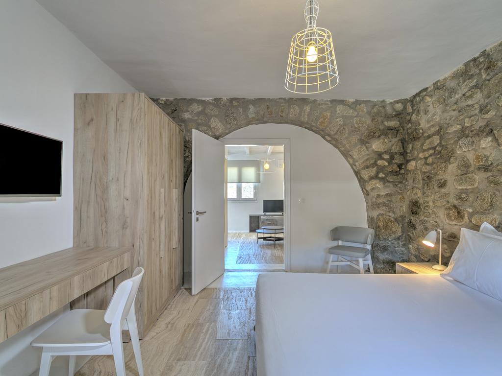 Situato a Elia Beach, il Senses Luxury Villas & Suites offre una piscina all'aperto, la vista sul Mar Egeo, un bar, uno snack bar e sistemazioni elegantemente arredate con dettagli architettonici tradizionali e dotate di connessione WiFi gratuita.