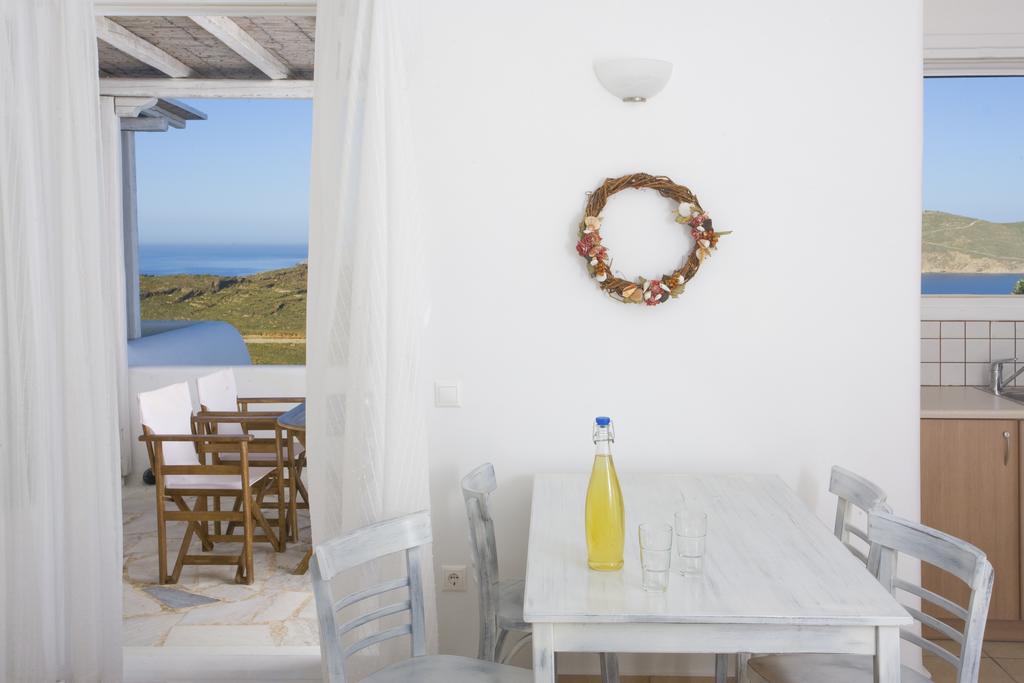 Gli alloggi dello Yakinthos, spaziosi e climatizzati, dispongono di veranda o terrazza privati con una vista mozzafiato sulla Baia di Panormos e sul Mar Egeo, di cucina completamente attrezzata o di angolo cottura con frigo. Ogni giorno potrete gustare la colazione dello Yakinthos nel comfort della vostra sistemazione.