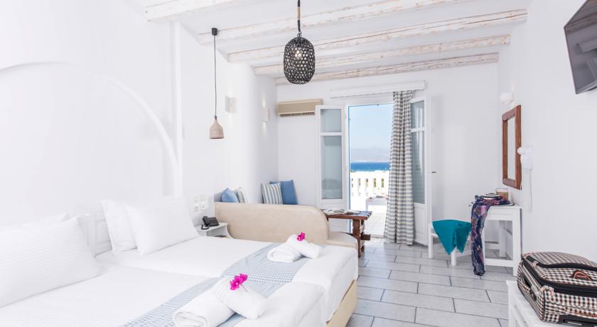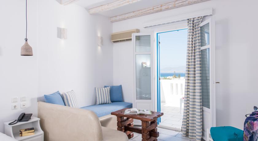 A ristorazione indipendente, climatizzati e decorati tradizionalmente, gli spaziosi alloggi del Cycladic View includono un balcone, un asciugacapelli, un frigorifero e una TV satellitare.