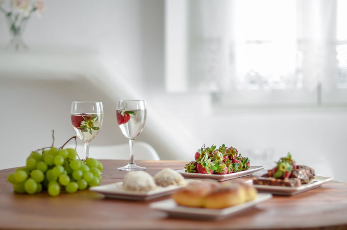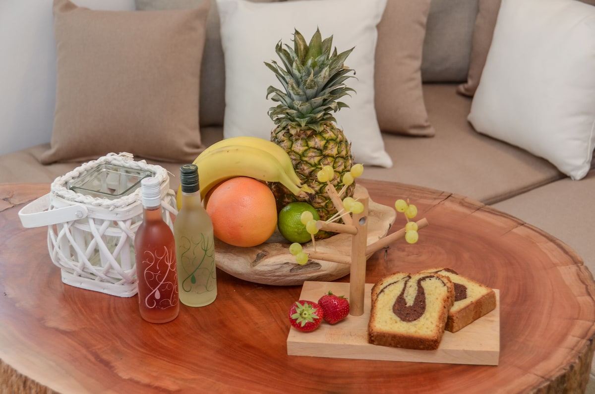 Nella nostra terrazza baciata dal sole, potrete provare il gusto dell'eccezionale colazione biologica naxiana fatta in casa, che include frutta e verdura coltivate in casa.