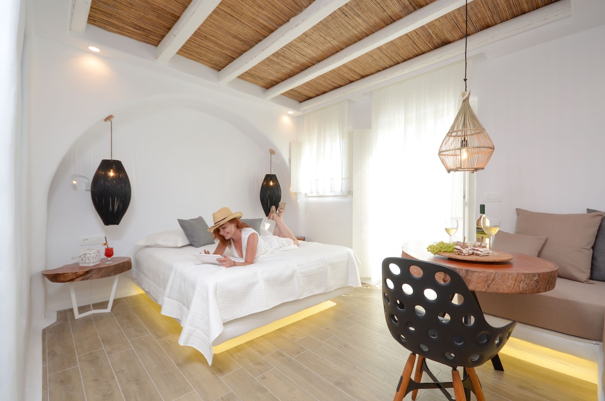 Naxos Island Escape è composto da Deluxe, Executive e Grand Suite dal design altamente estetico, completamente attrezzate con servizi accuratamente selezionati. Dispone di vasche idromassaggio di categorie specifiche, parcheggio privato e servizi di alta qualità.