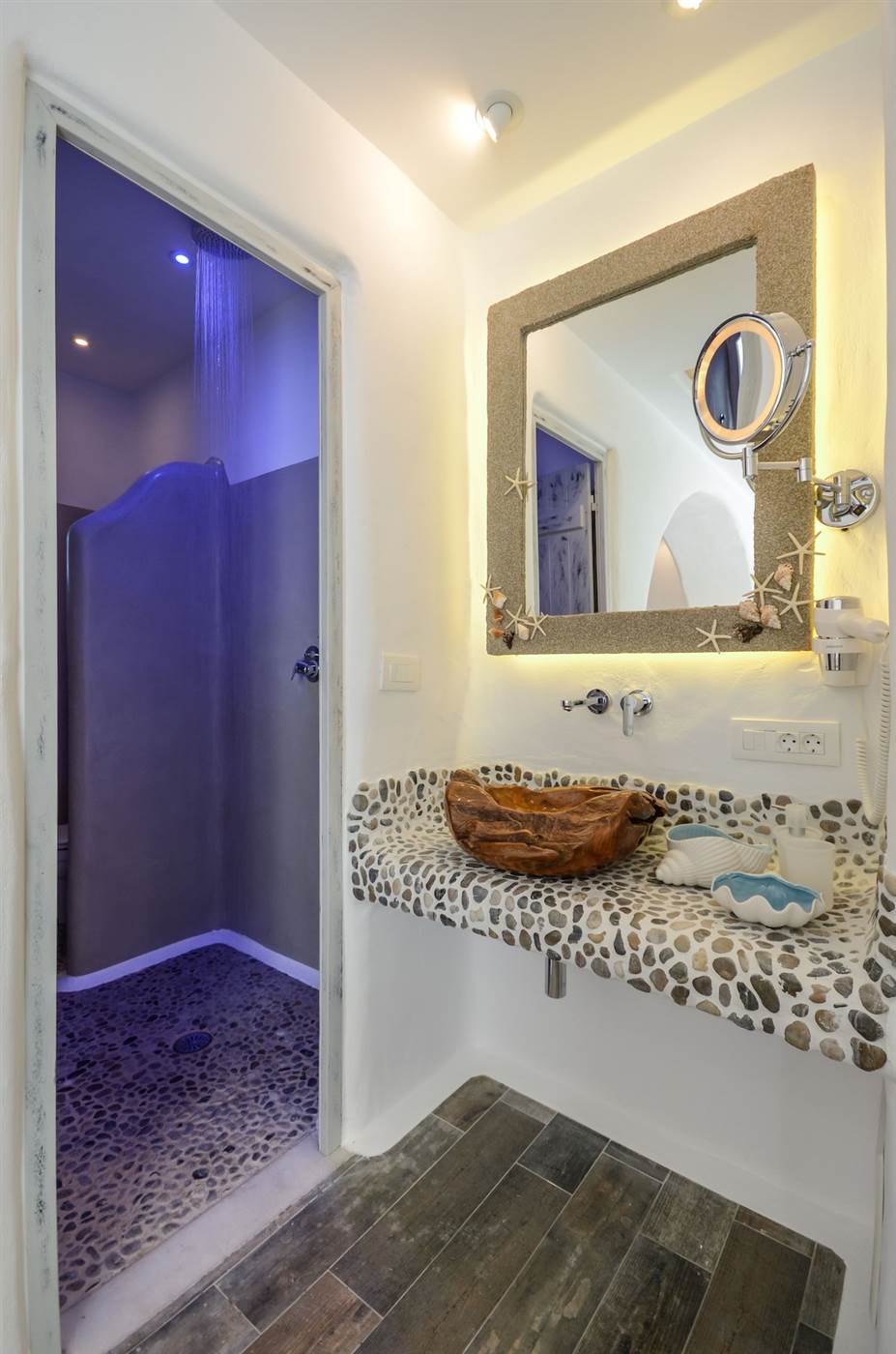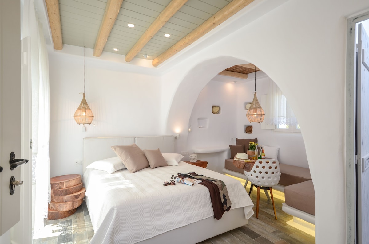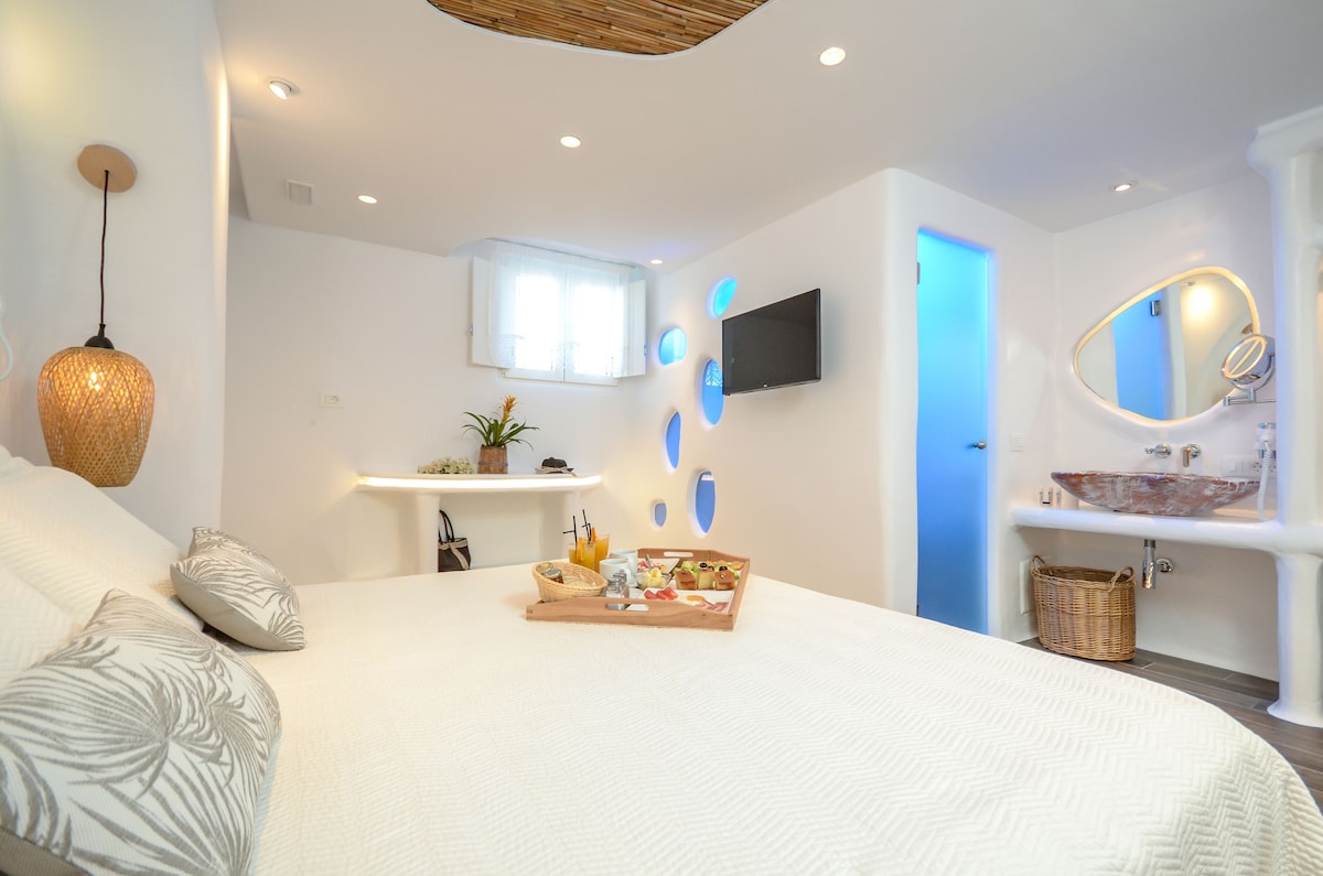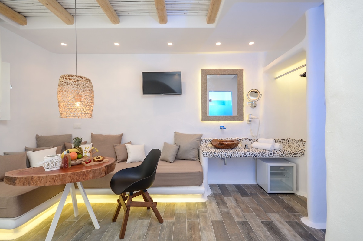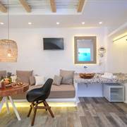 Combinando magnifiche viste sull'Egeo con privacy esclusiva e tutti i comfort essenziali in una sistemazione di lusso, la nostra Suite Living è destinata a offrire l'autentica ospitalità greca al suo meglio!