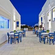 Come ospiti del Naxos Island potrete accomodarvi al ristorante Taverna in stile cicladico, situato all'ultimo piano, che serve piatti greci per pranzo e cena, una colazione a buffet, spuntini e bevande.