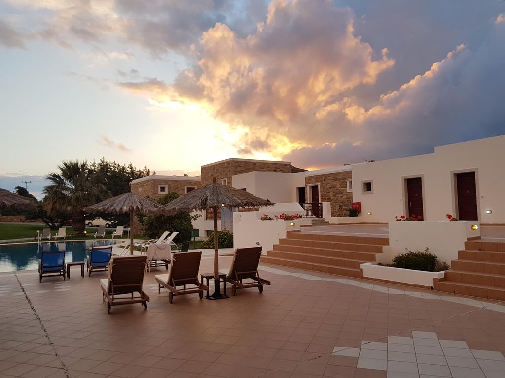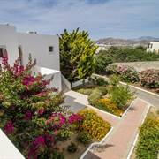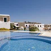 Circondato da un tranquillo e semplice giardino verdeggiante, che ricrea l'atmosfera tradizionale delle Cicladi, il complesso vanta un ristorante, un bar e servizi per il fitness e il benessere, tra cui una piscina all'aperto e una vasca idromassaggio. Ogni giorno viene servita una prima colazione all'americana.