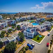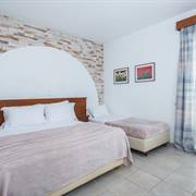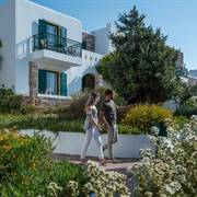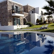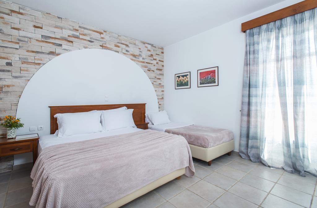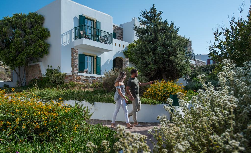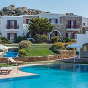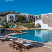 Circondato da un tranquillo e semplice giardino verdeggiante, che ricrea l'atmosfera tradizionale delle Cicladi, il complesso vanta un ristorante, un bar e servizi per il fitness e il benessere, tra cui una piscina all'aperto e una vasca idromassaggio. Ogni giorno viene servita una prima colazione all'americana.