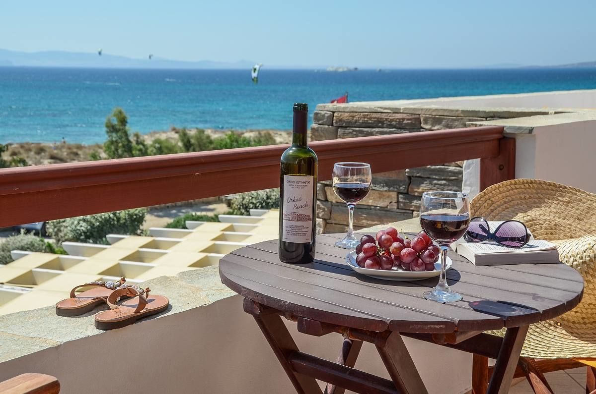 Semplici ma arredate con gusto, tutte le unità dell'Orkos Beach Hotel dispongono di aria condizionata, tonalità calde. TV LCD, frigorifero e cassaforte. Il bagno privato è completo di set di cortesia, vasca o doccia e asciugacapelli. Le sistemazioni regalano una vista sulla Baia di Mikri Vigla e sull'Isola di Naxos.