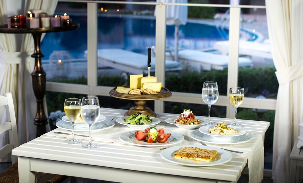 Potrete gustare la prima colazione sulla terrazza, rilassarvi accanto alla piscina o visitare il ristorante che propone una cucina mediterranea creativa. I pasti possono essere serviti anche a bordo piscina o nelle camere.