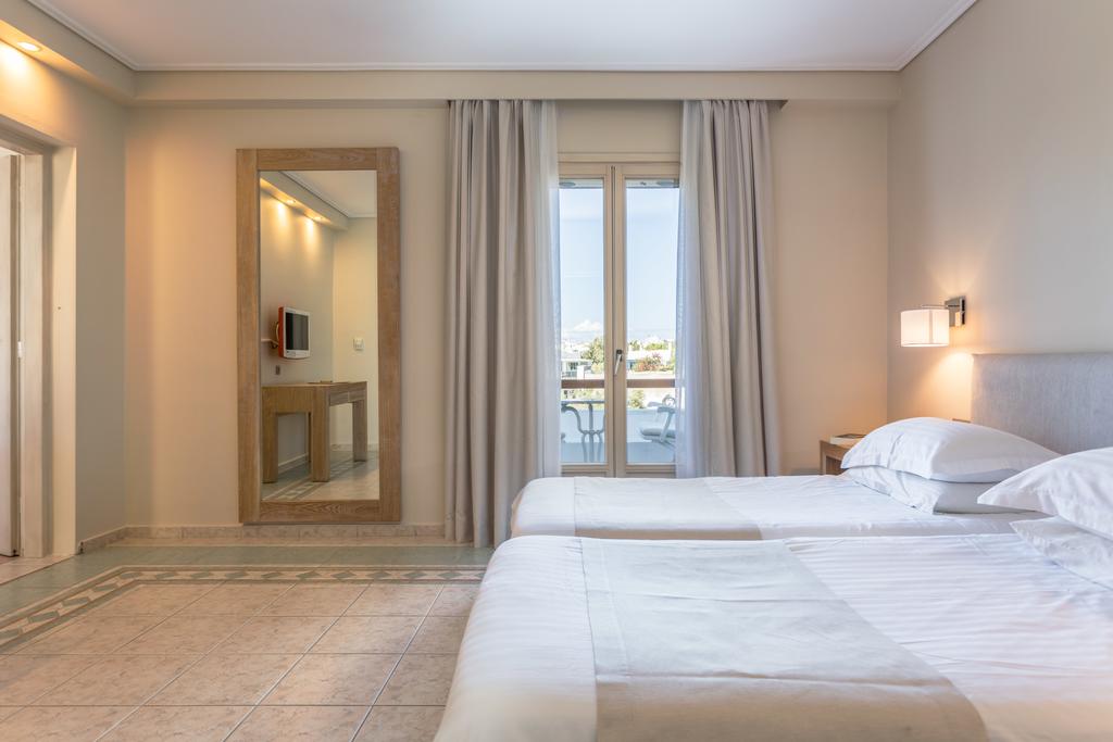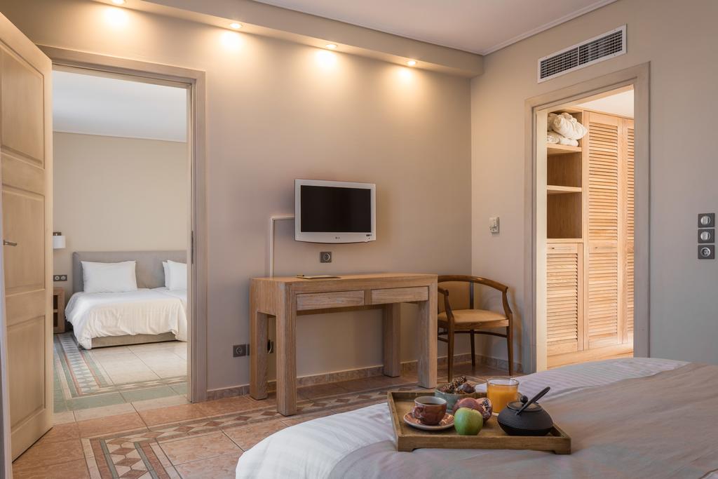 Decorate con i colori della natura, tutte le sistemazioni del Porto Naxos dispongono di aria condizionata, mobili eleganti, TV, cassaforte e bagno ben fornito con pantofole, set di cortesia Korres, accappatoi e asciugacapelli. Alcune includono una biciclette gratuita per tutta la durata del soggiorno.