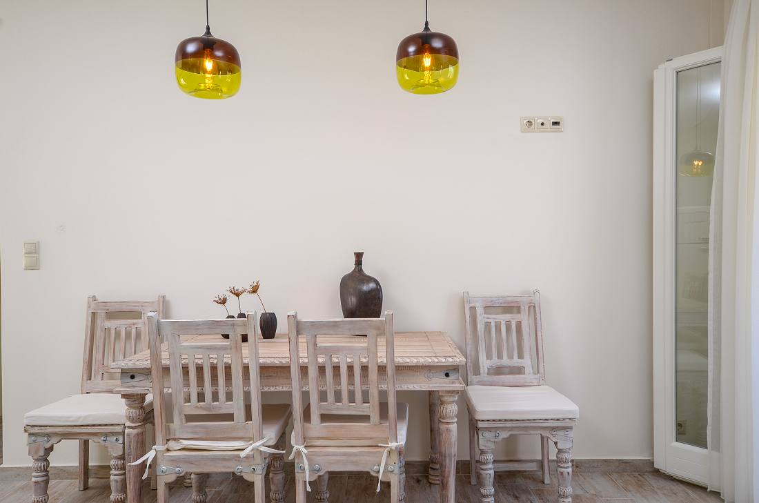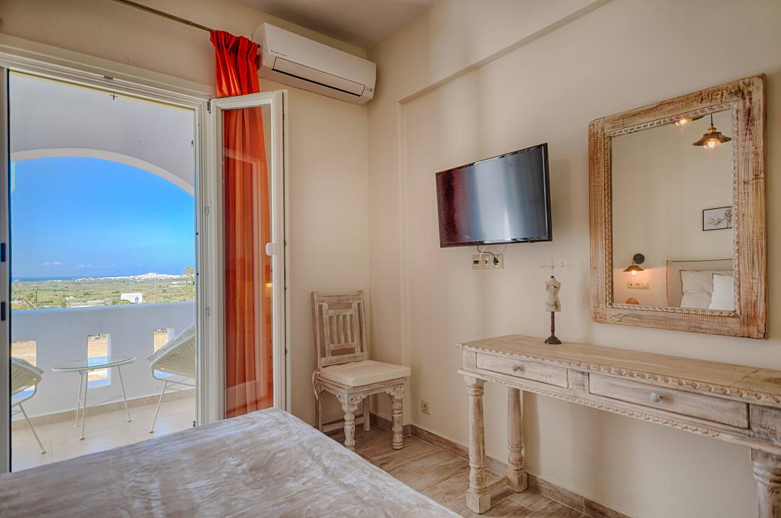 Il piano terra ha una camera da letto, un bagno e una zona soggiorno con la cucina completamente attrezzata. Il seminterrato dispone di una camera da letto dove letti supplementari possono essere posizionati per accogliere più ospiti. La villa offre eccellenti viste panoramiche sul mare, della città di Naxos e Paros. Servizi connessione internet Wi-Fi (gratuito) Aria condizionata in ogni stanza 2 piatto Audio, DVD, Radio Cucina con piano cottura in vetroceramica Cucina attrezzata tostapane Macchina per il caffè Lavastoviglie Lavatrice barbeque in comune
