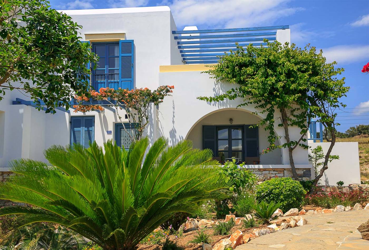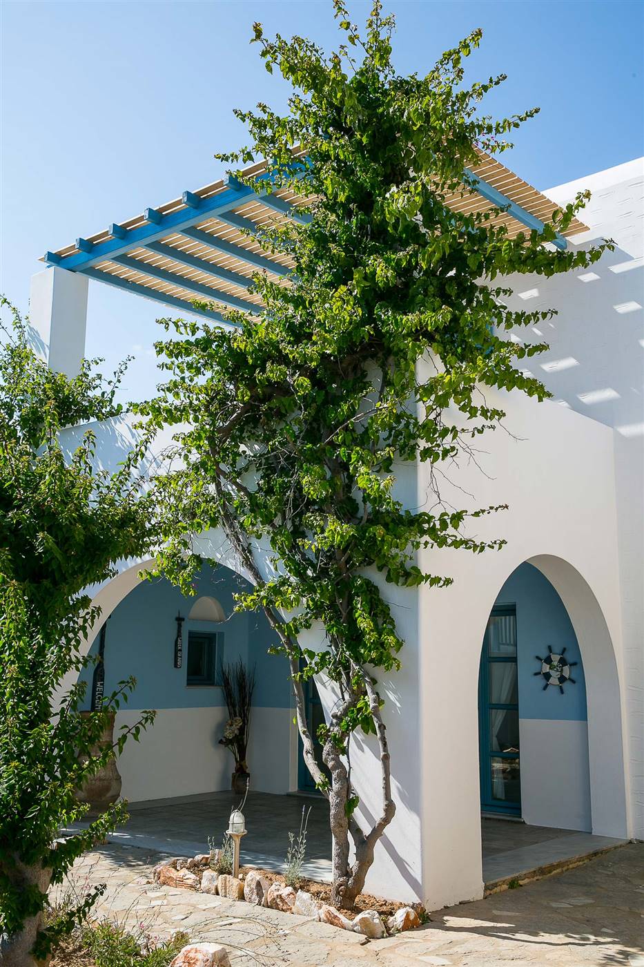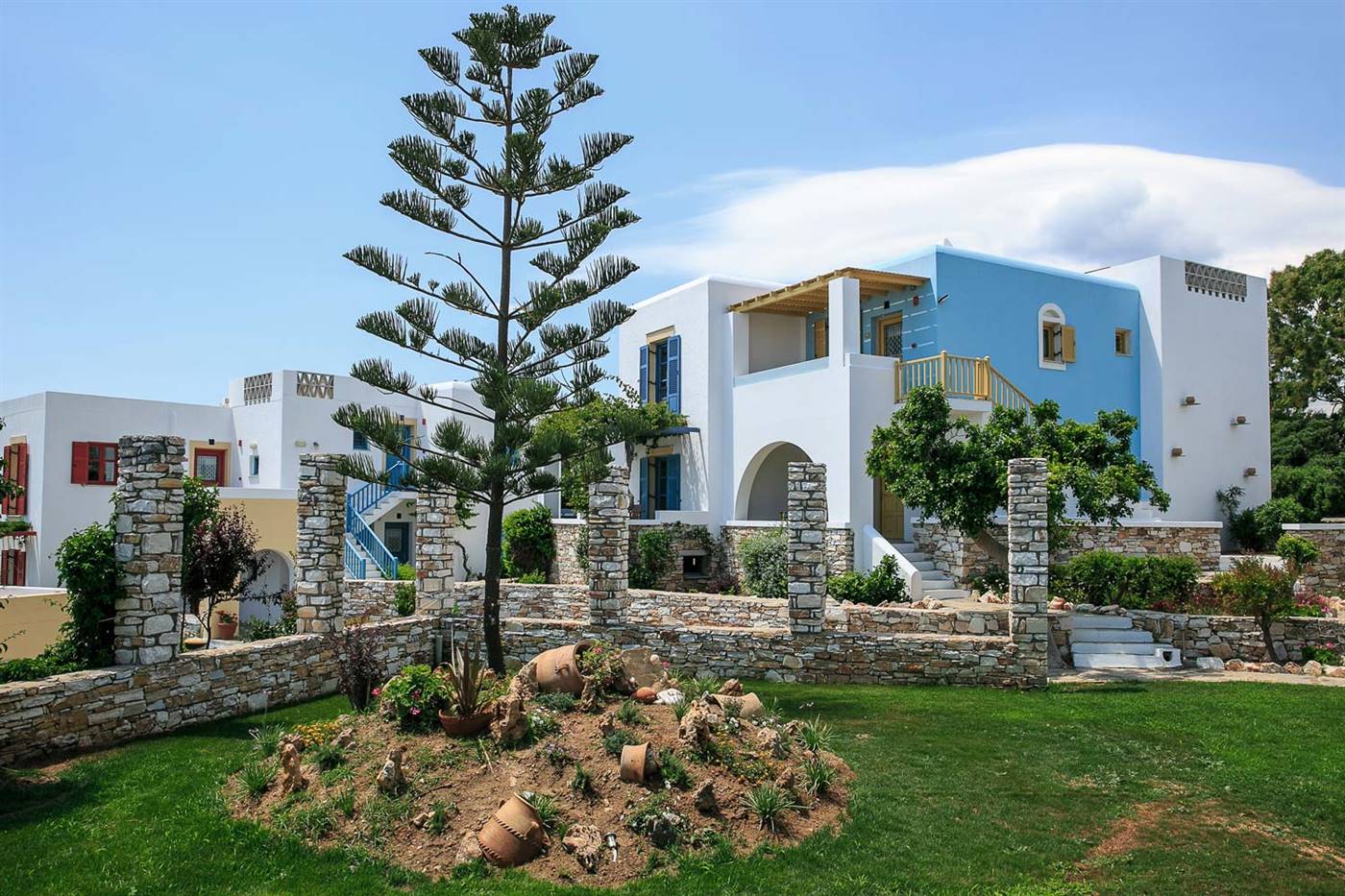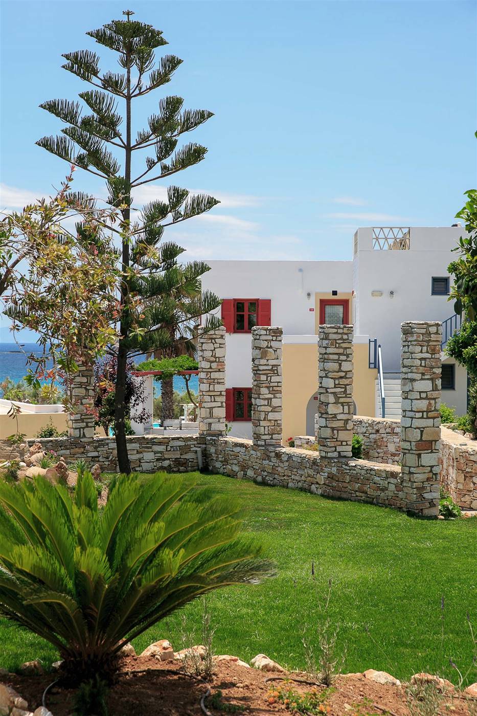 Arredate nello stile tradizionale delle Cicladi, tutte le suite dispongono di balcone o terrazza con vista sul giardino o sul Mar Egeo. Le sistemazioni sono dotate di aria condizionata, zona giorno arredata in modo confortevole, TV, frigorifero e bagno in marmo.