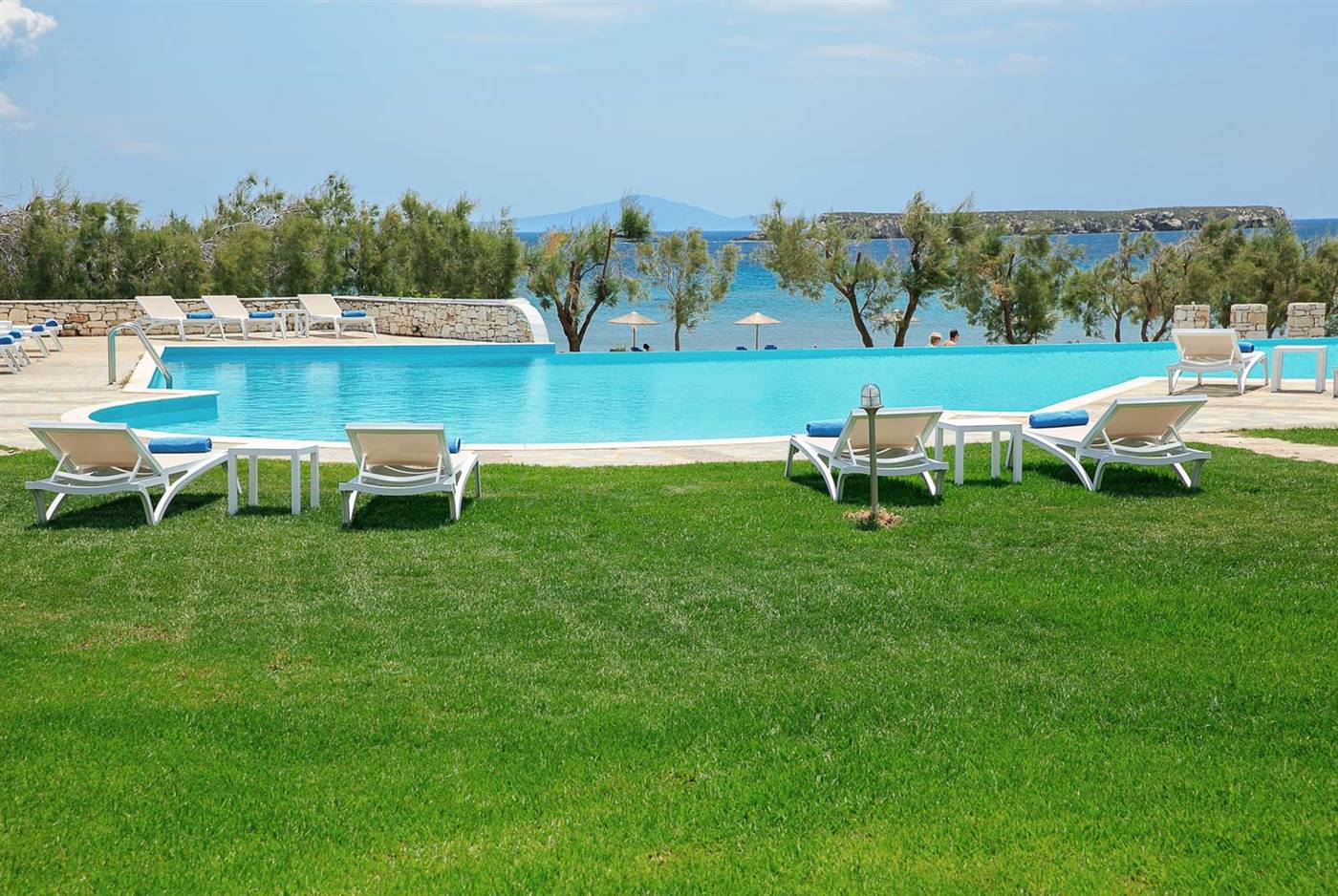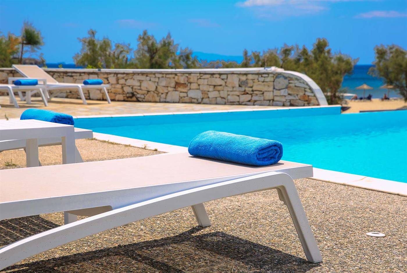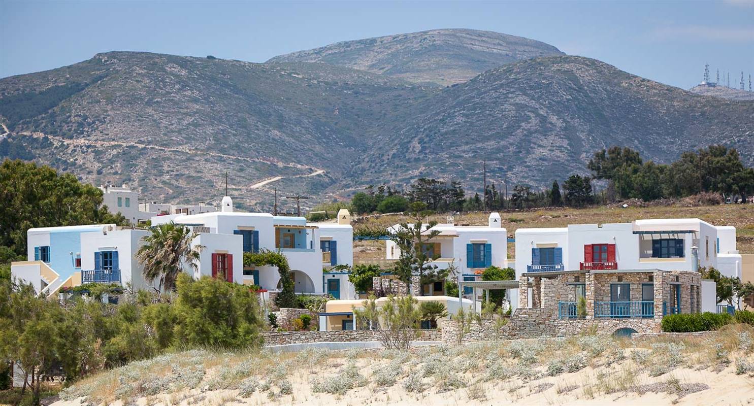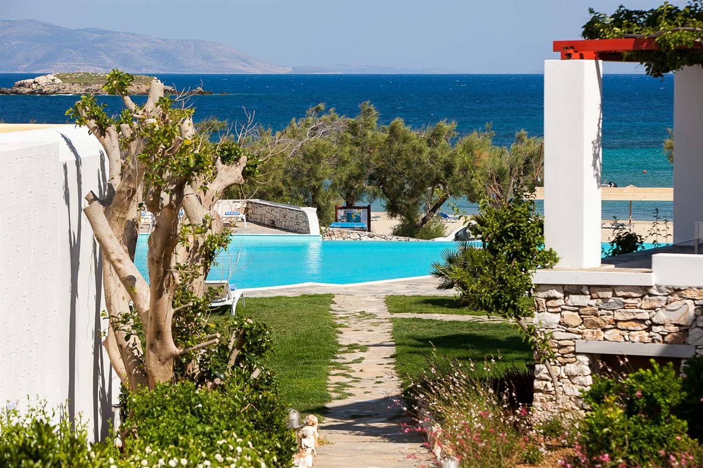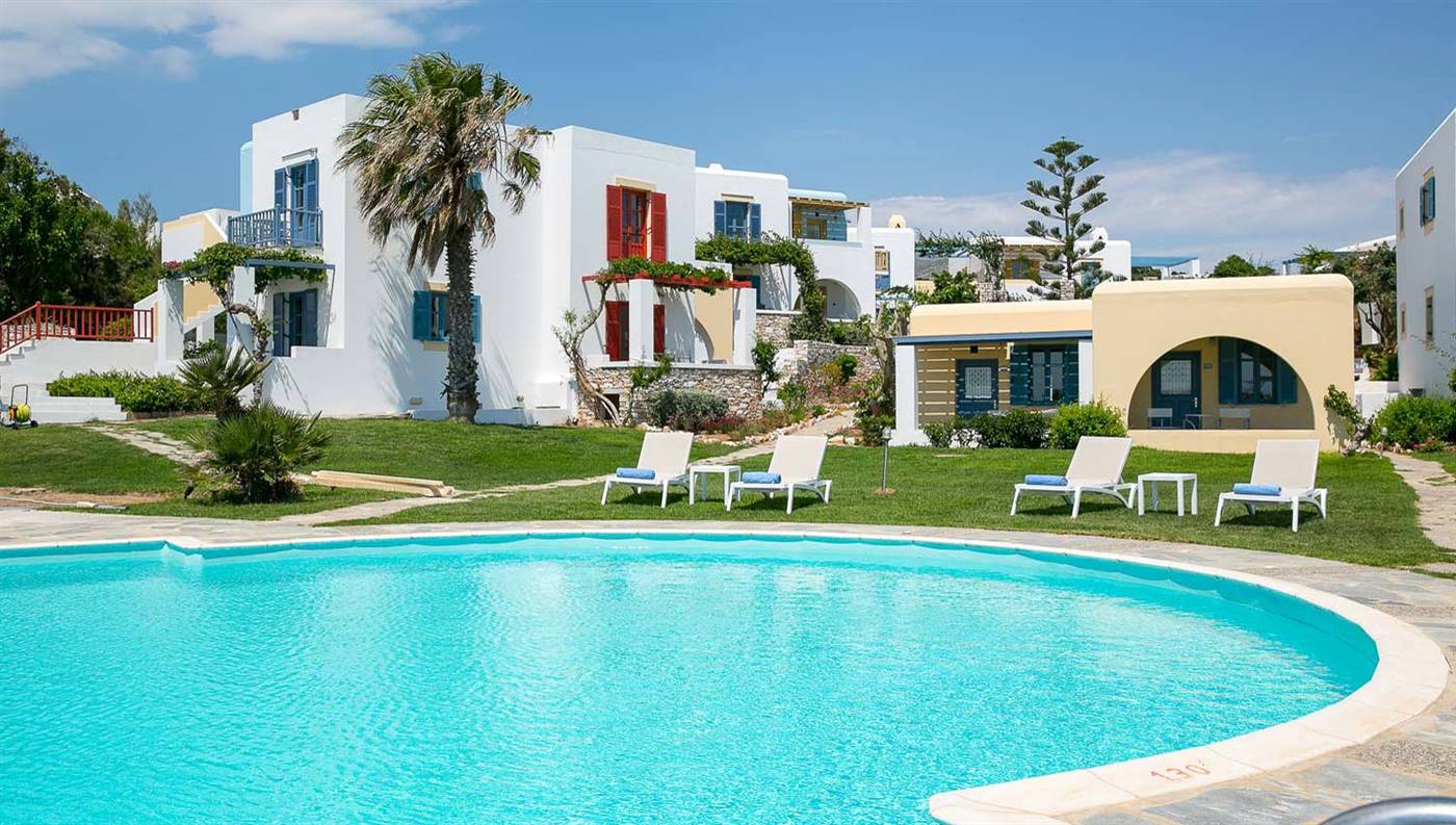 Arredate nello stile tradizionale delle Cicladi, tutte le suite dispongono di balcone o terrazza con vista sul giardino o sul Mar Egeo. Le sistemazioni sono dotate di aria condizionata, zona giorno arredata in modo confortevole, TV, frigorifero e bagno in marmo.
