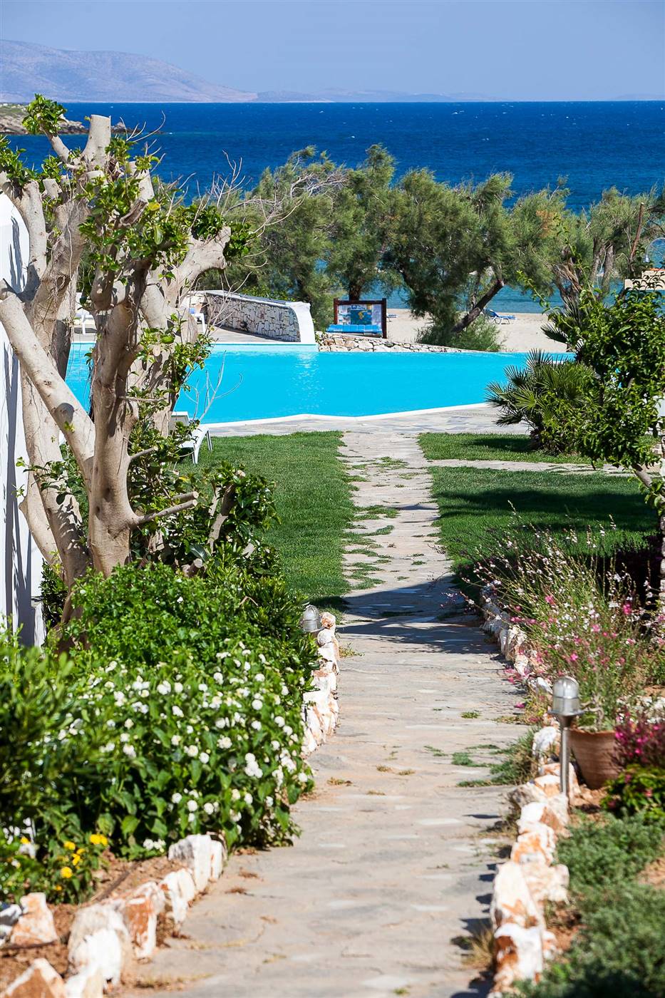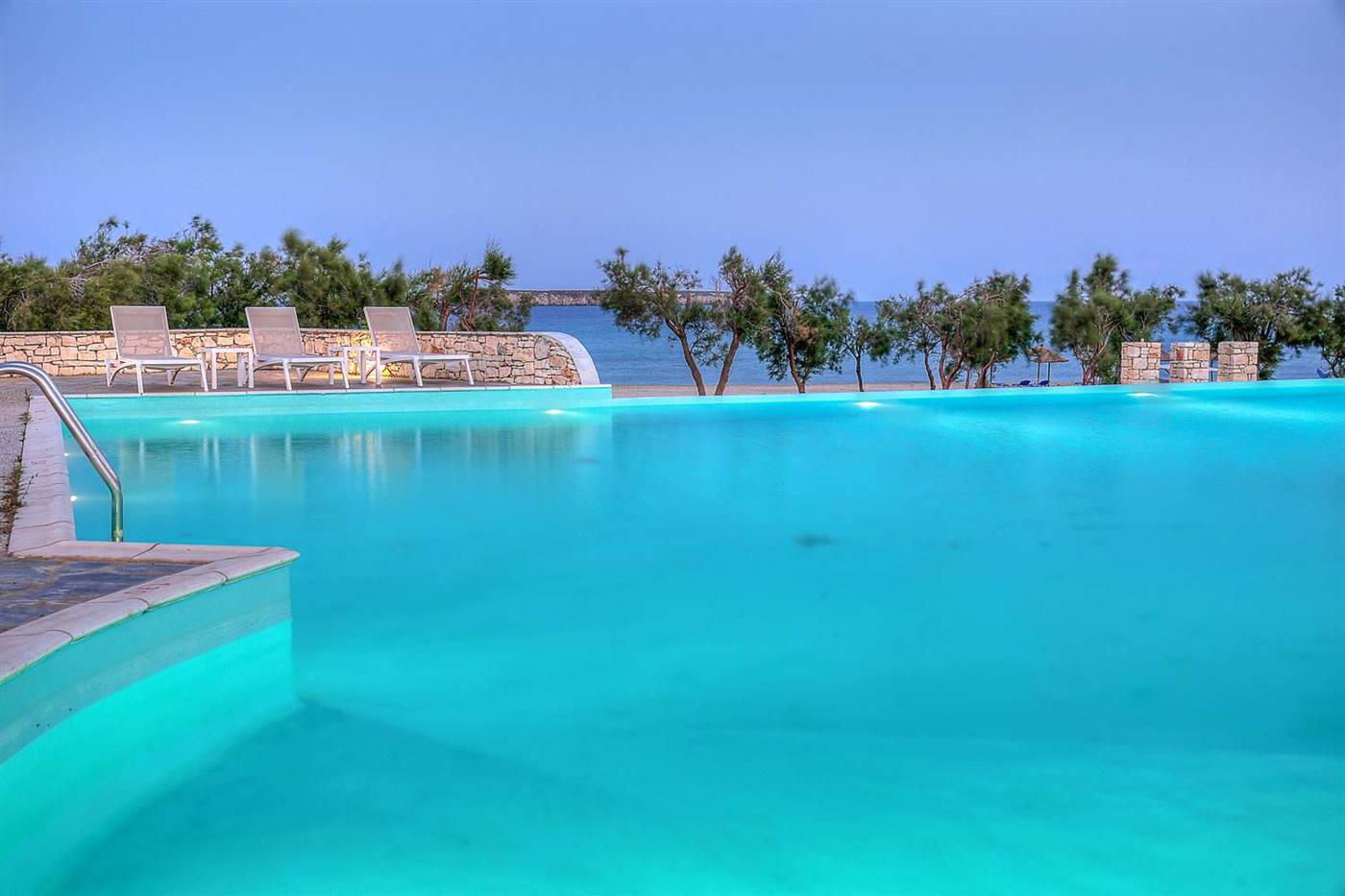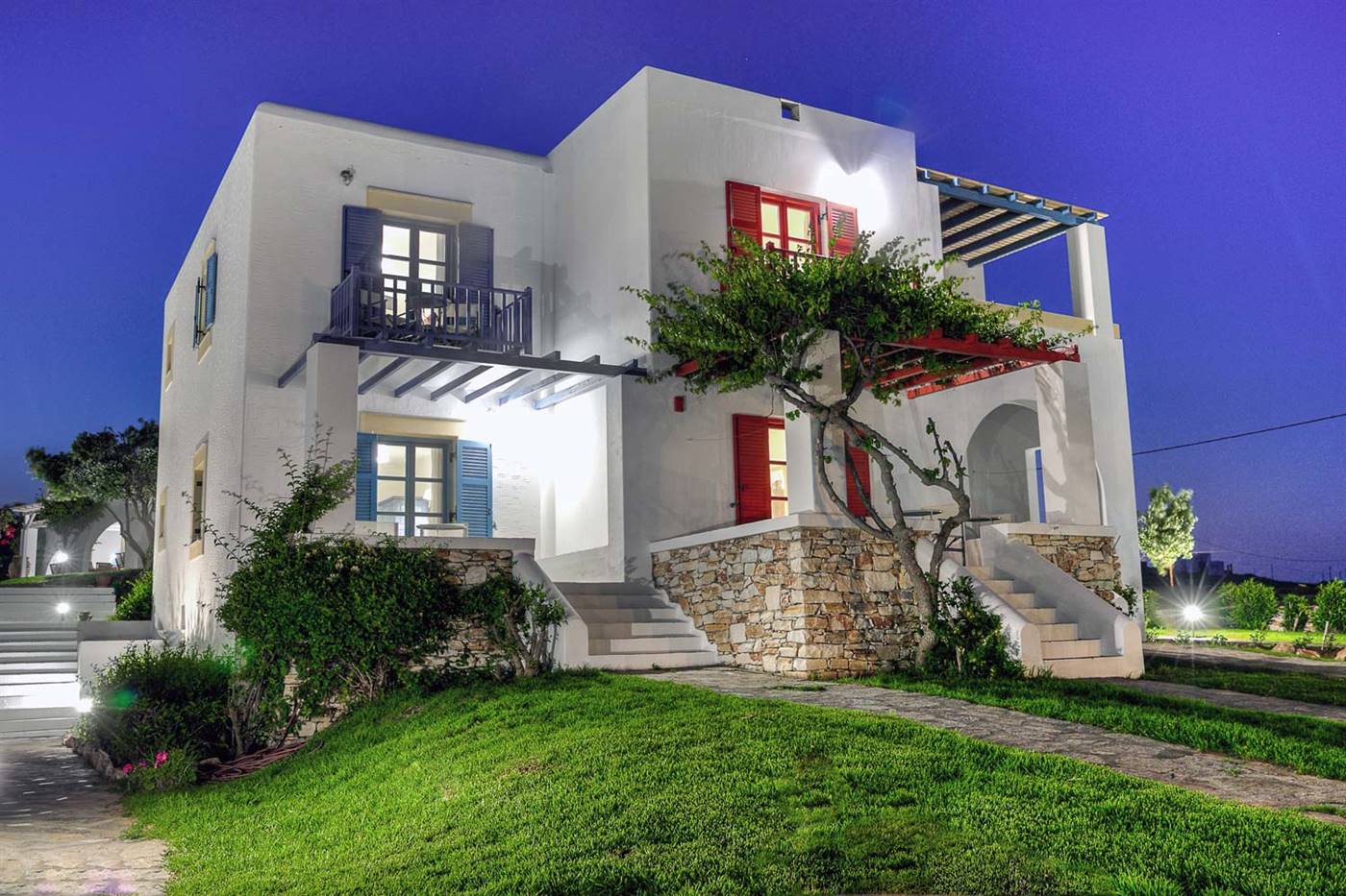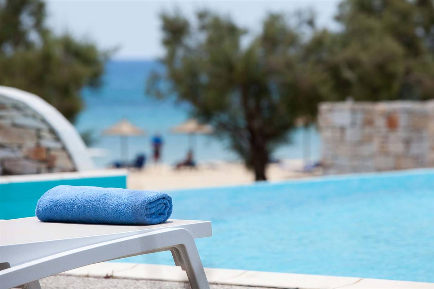 Arredate nello stile tradizionale delle Cicladi, tutte le suite dispongono di balcone o terrazza con vista sul giardino o sul Mar Egeo. Le sistemazioni sono dotate di aria condizionata, zona giorno arredata in modo confortevole, TV, frigorifero e bagno in marmo.