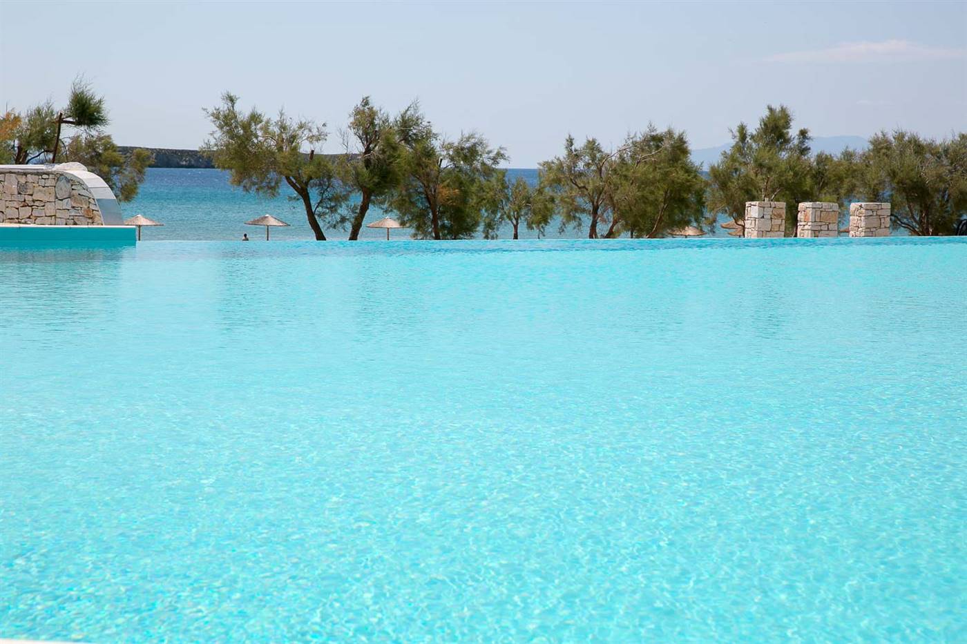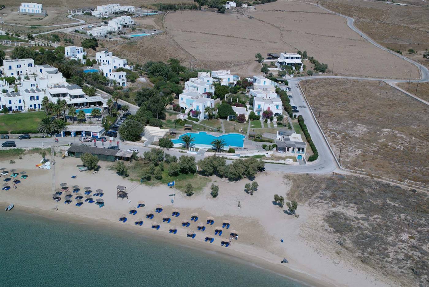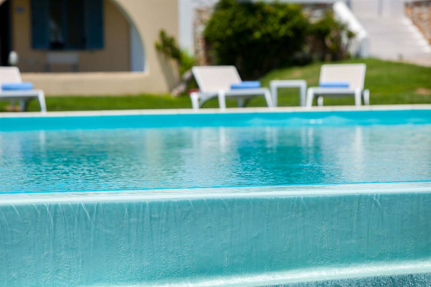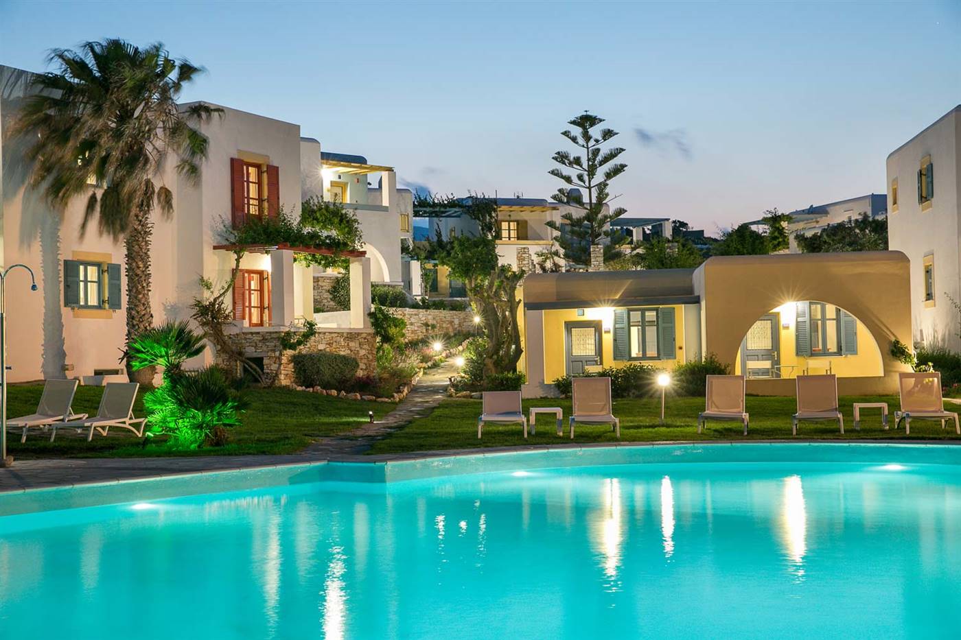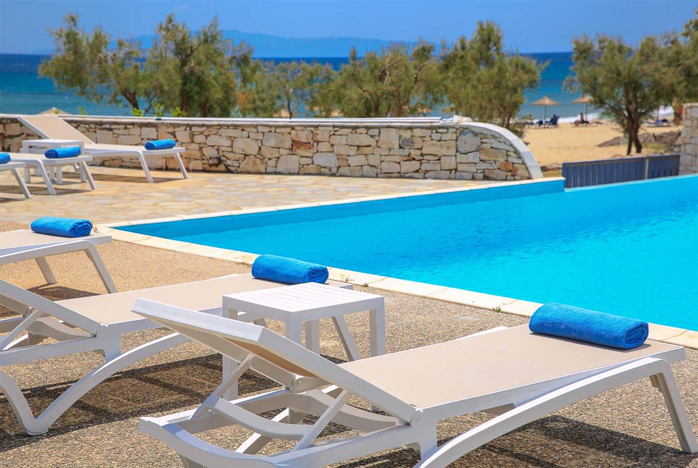 Arredate nello stile tradizionale delle Cicladi, tutte le suite dispongono di balcone o terrazza con vista sul giardino o sul Mar Egeo. Le sistemazioni sono dotate di aria condizionata, zona giorno arredata in modo confortevole, TV, frigorifero e bagno in marmo.