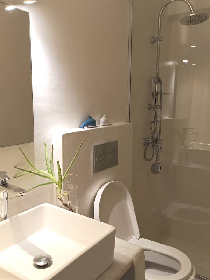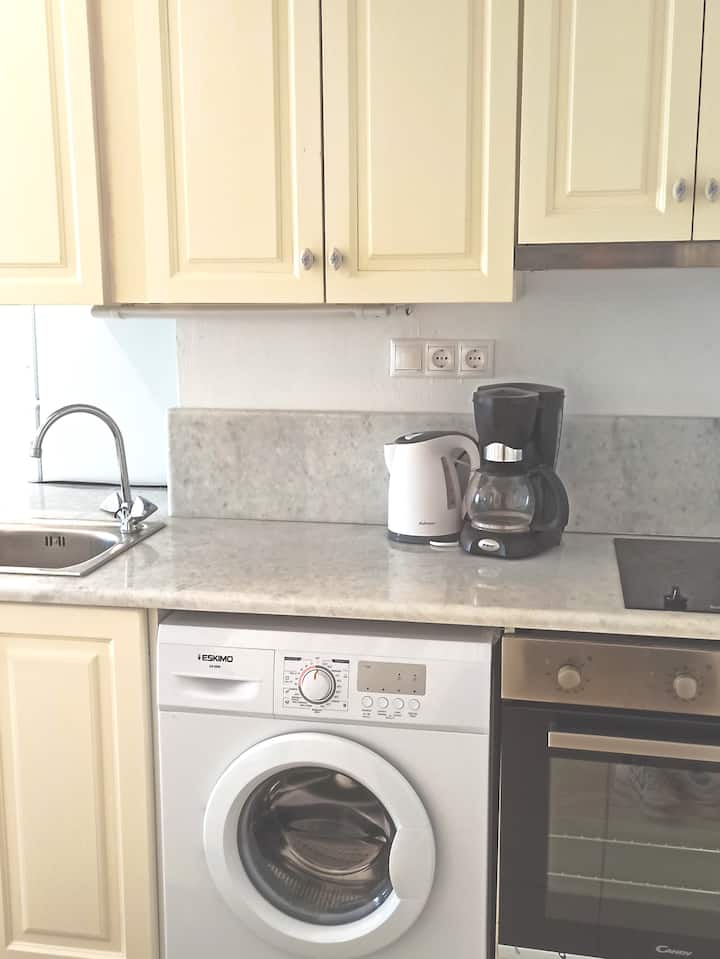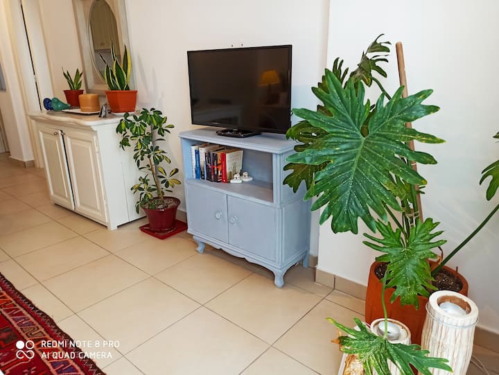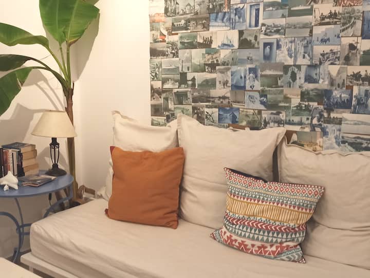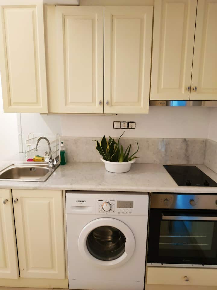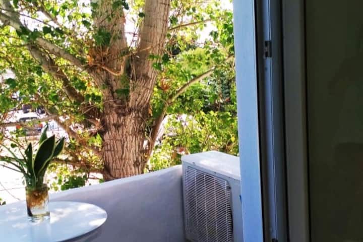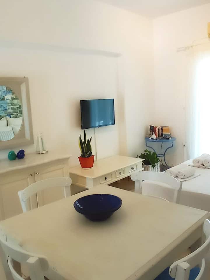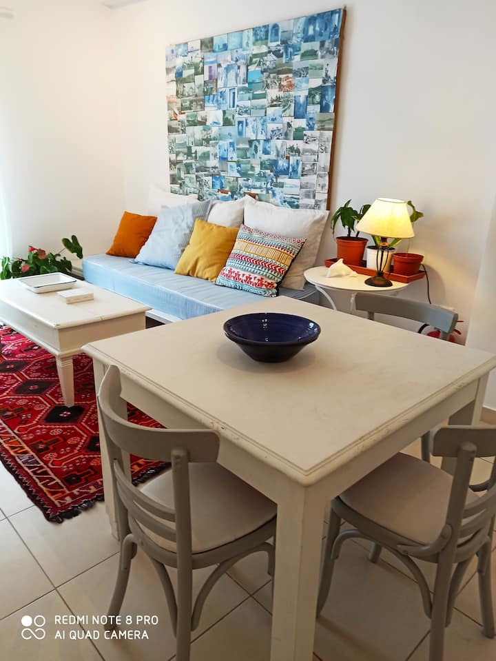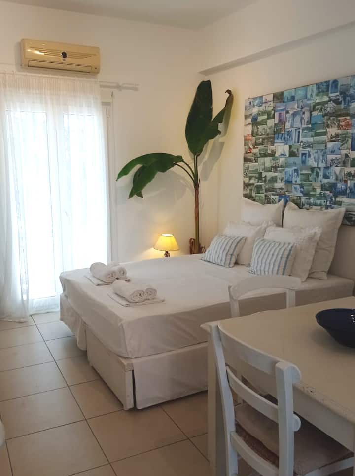 L'appartamento si compone di due camere: cucina-soggiorno cucina (completamente attrezzata con elettrodomestici nuovi di zecca - frigorifero, forno e lavatrice) , camera da letto e 2 bagni. Nel soggiorno c'è una sala da pranzo e un divano letto che può ospitare 2 persone e un balcone dove potrete fare colazione godendovi l'ombra dell'albero. C'è un bagnetto vicino alla cucina. La camera da letto ha un letto matrimoniale vintage (dimensioni 1,60m x2,00m), bagno privato e balcone privato.  Può ospitare coppie, famiglie con 1-2 bambini, un gruppo di amici che desiderano avere un accesso vicino a tutti i punti di interesse di Parikia e Paros in generale.