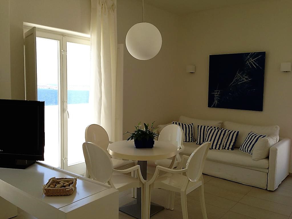 Le eleganti camere dell'Archipelagos Resort sono arredate in stile minimalista e tipicamente cicladico e includono l'aria condizionata, una TV LCD satellitare, la connessione WiFi gratuita, una cassaforte, un angolo cottura con minibar, e, nella maggior parte dei casi, un balcone con vista sul mare.