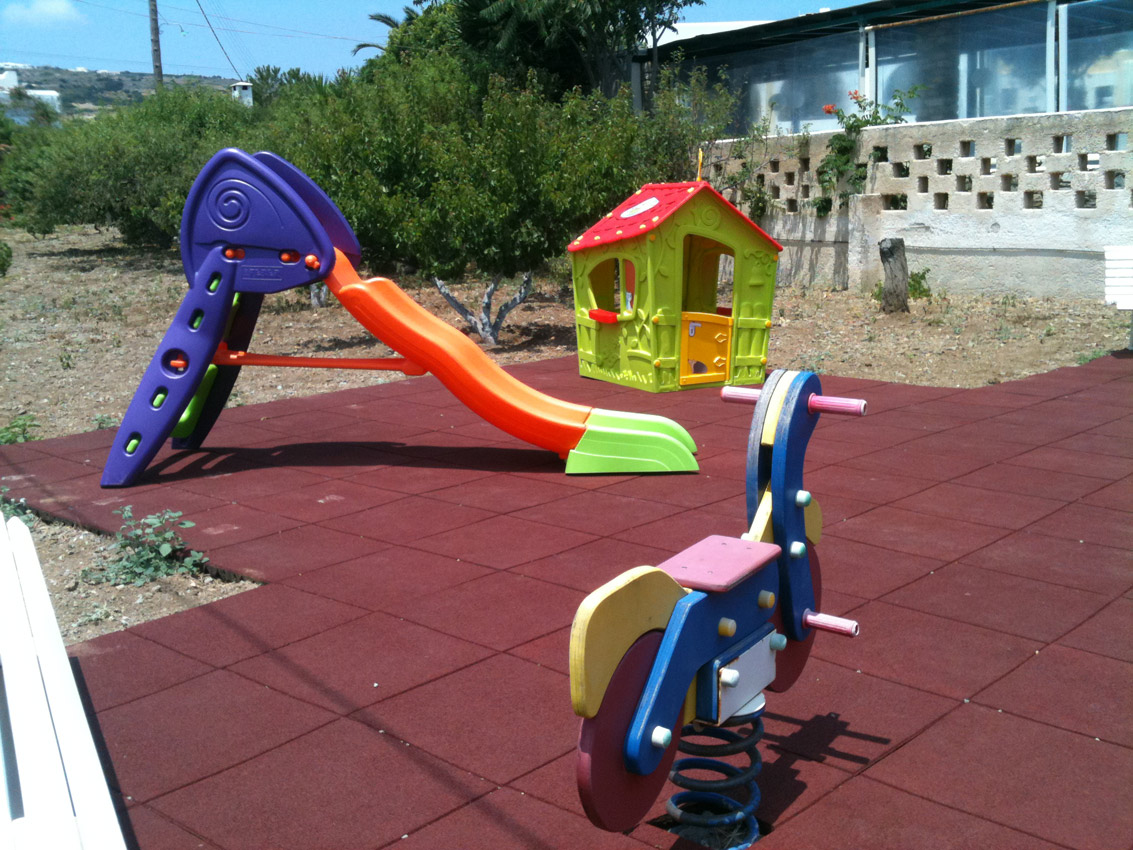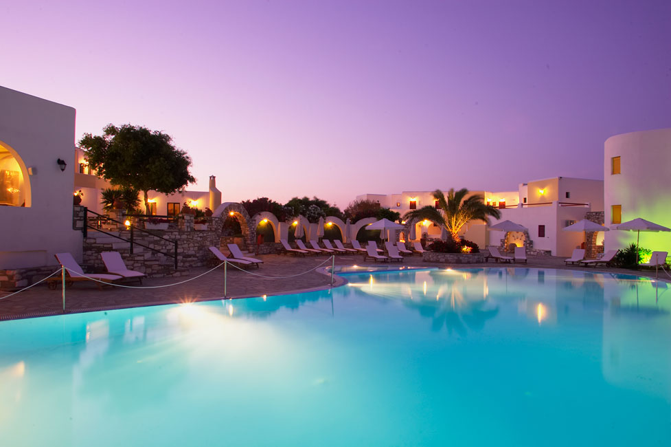 Costruito e decorato in sintonia con l'estetica e l'architettura cicladiche, il complesso vanta svariate strutture sportive e ricreative, fra cui un campo da tennis, un minigolf, una palestra e una vasca idromassaggio. Per la gioia dei più piccoli non mancano un'area giochi e una piscina a loro dedicata.