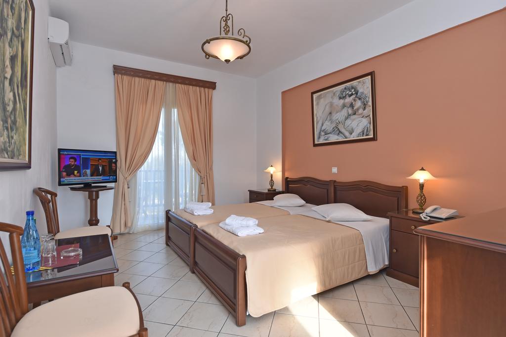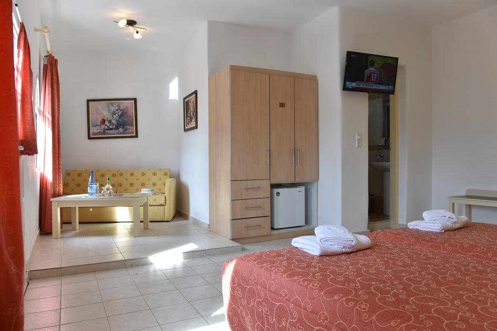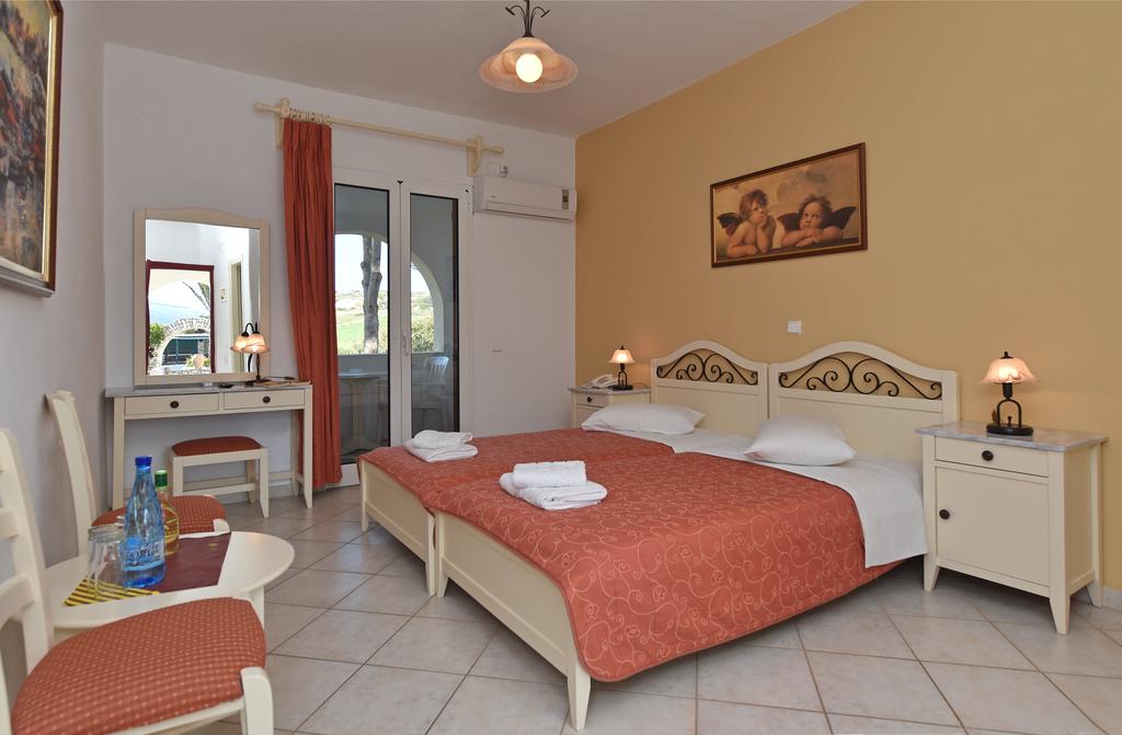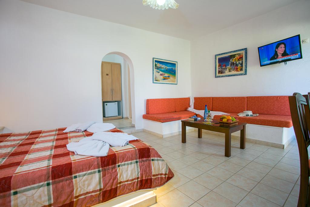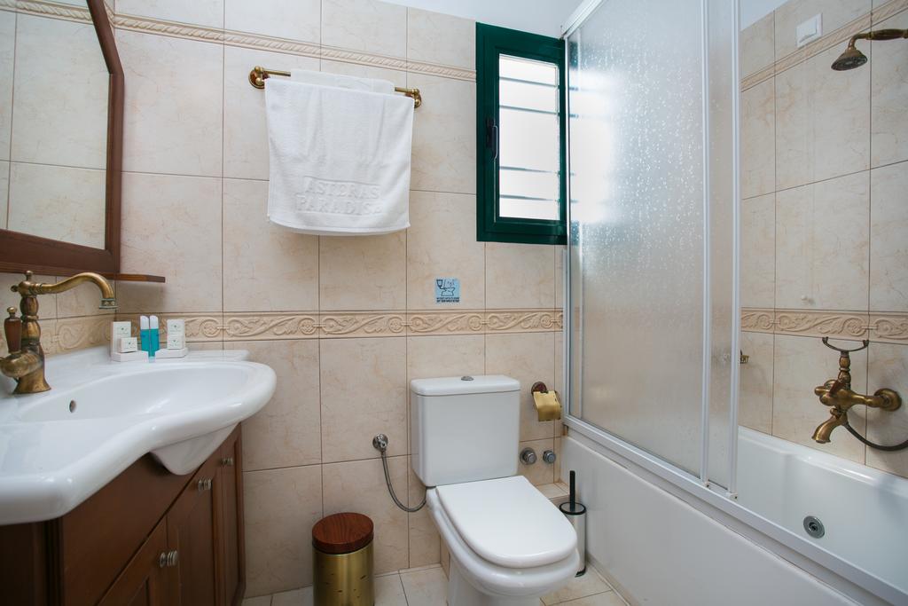 L'Asteras Paradise offre varie tipologie di sistemazione, tutte con vista sul mare, sulla piscina o sul giardino e complete di TV, frigorifero e, in alcuni casi, vasca da bagno con idromassaggio.