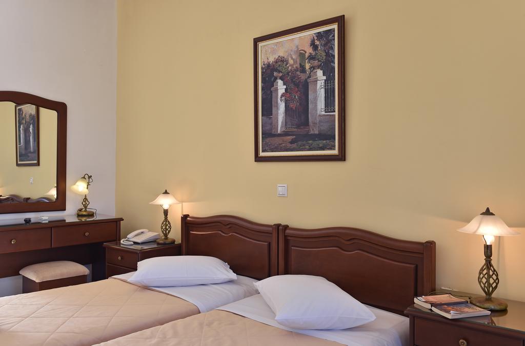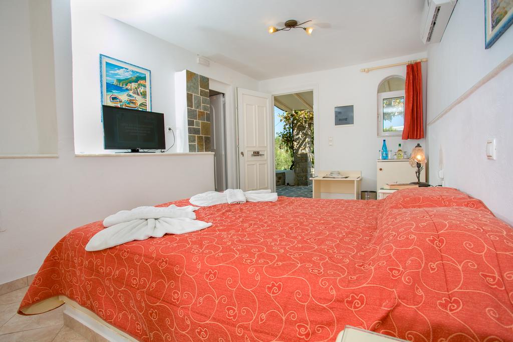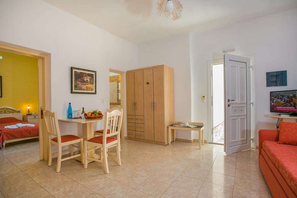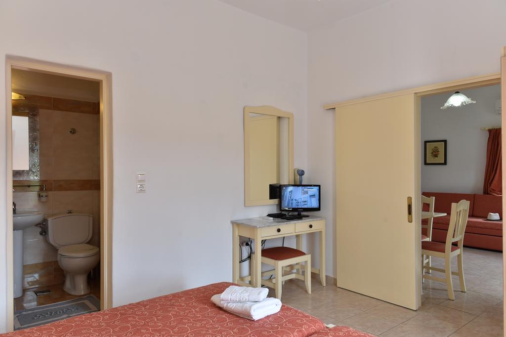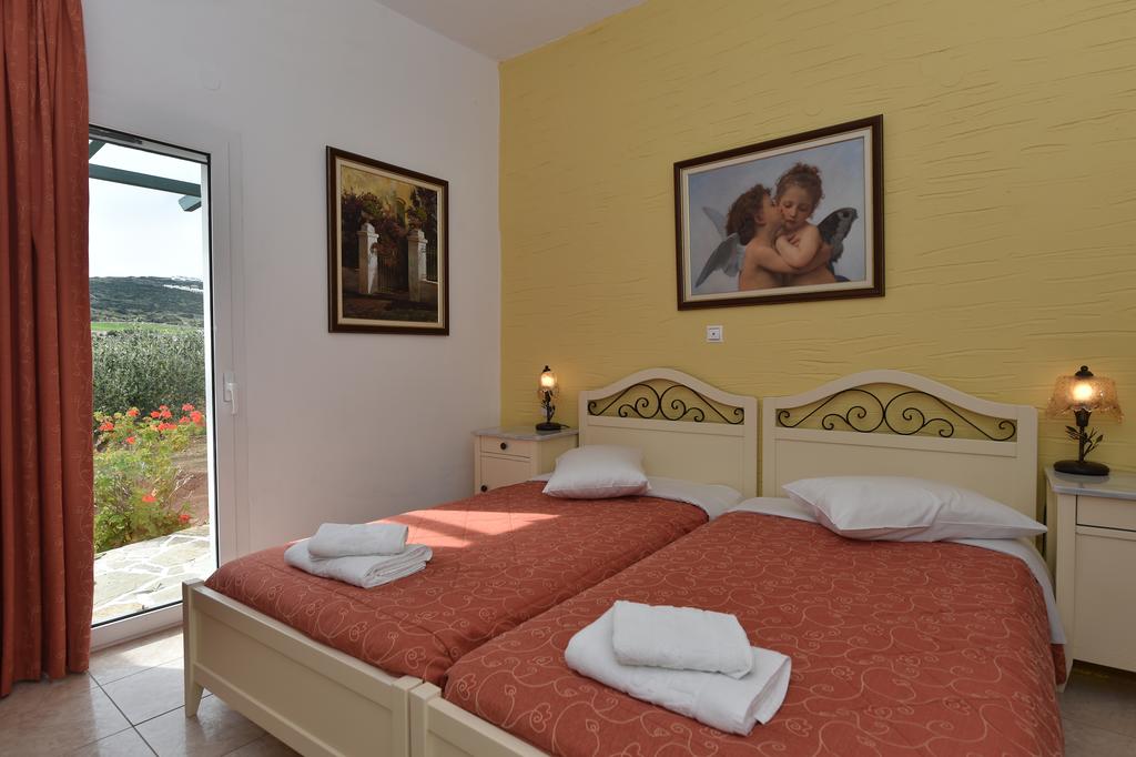 L'Asteras Paradise offre varie tipologie di sistemazione, tutte con vista sul mare, sulla piscina o sul giardino e complete di TV, frigorifero e, in alcuni casi, vasca da bagno con idromassaggio.