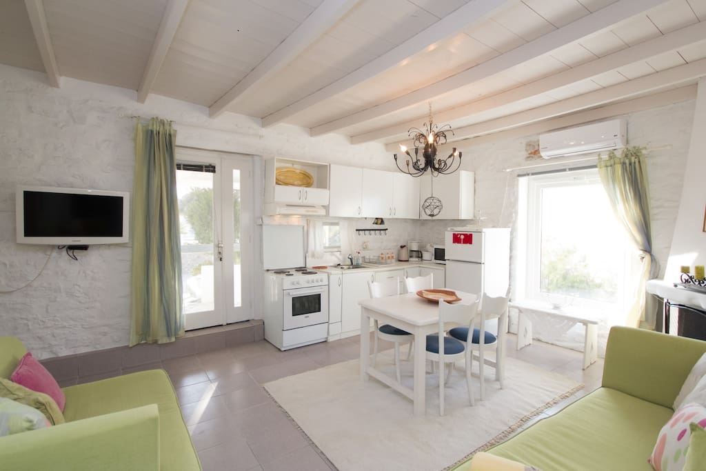 La casa di circa 80 m2 si trova sulla collina sopra la città di Parikia a soli 3 km dal porto di Paros e da alcune meravigliose spiagge. Può ospitare 4 persone in due camere da letto e due bagni