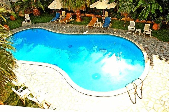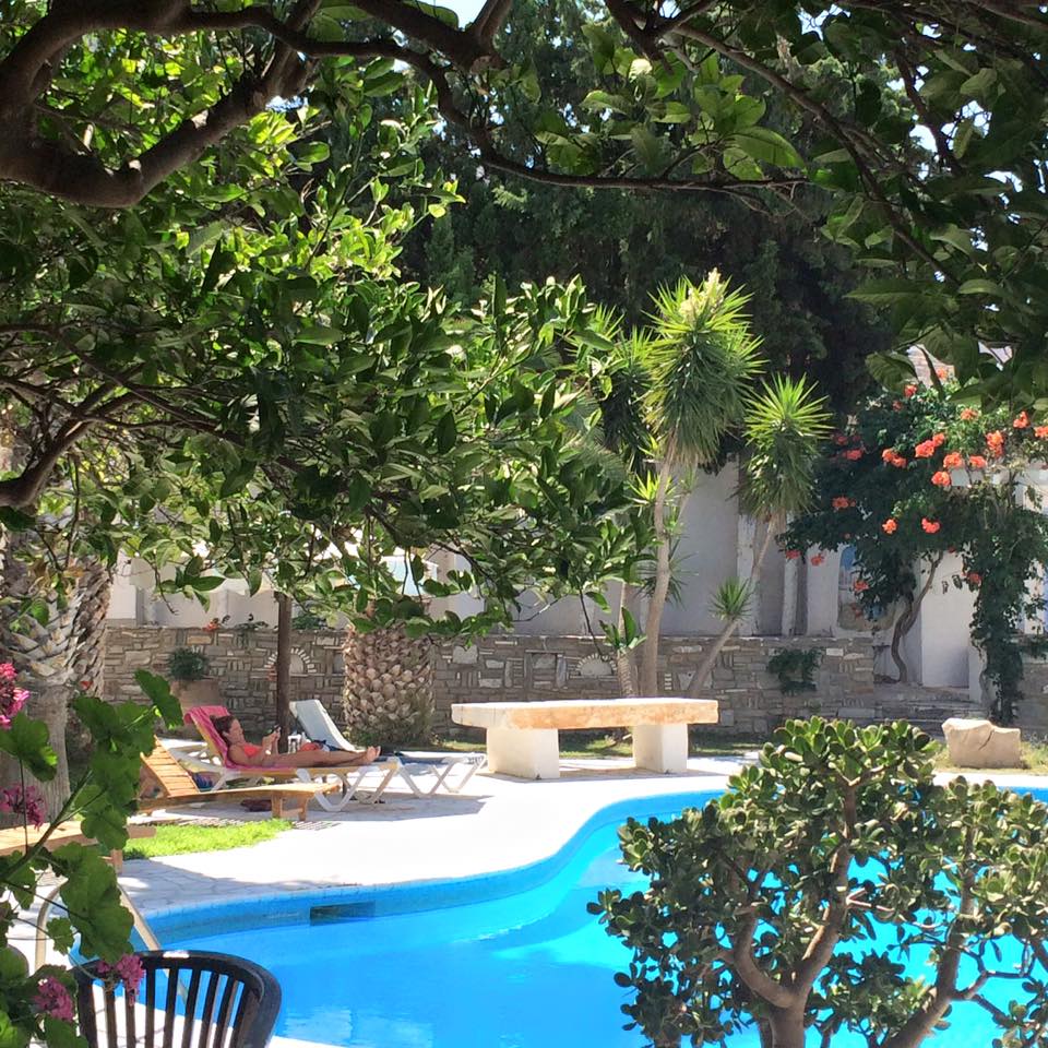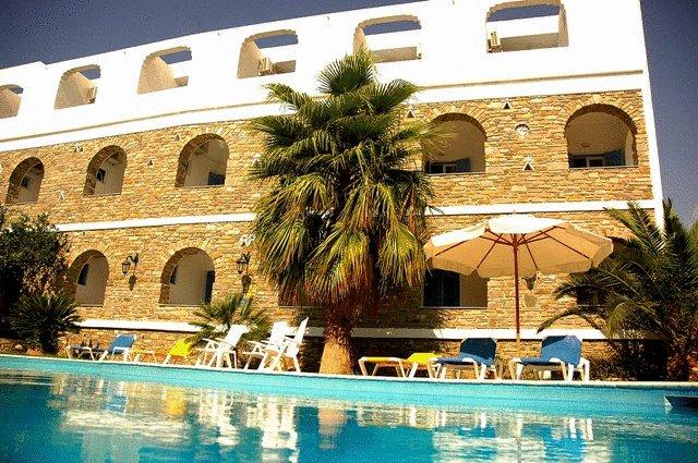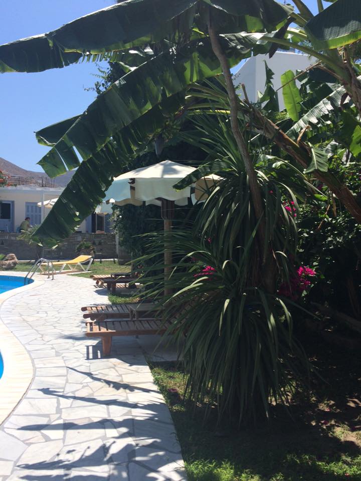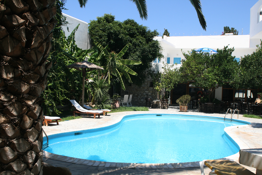 Presso l'Hotel Galinos potrete rilassarvi nella terrazza a bordo piscina, gustare un drink o rinfrescarvi con un bagno.