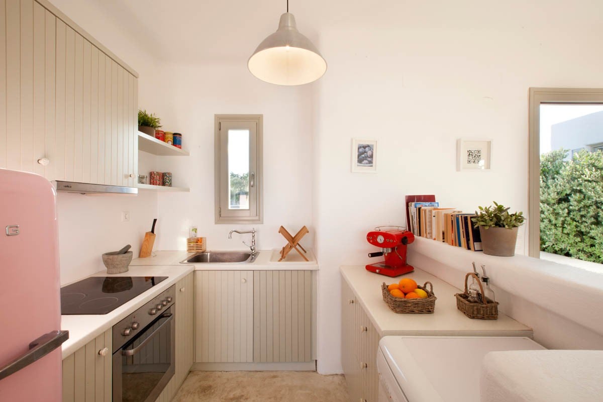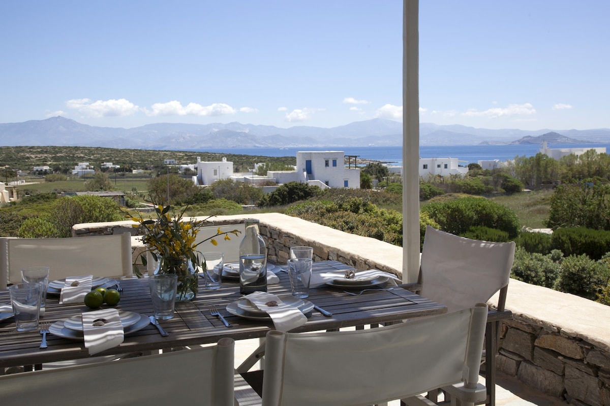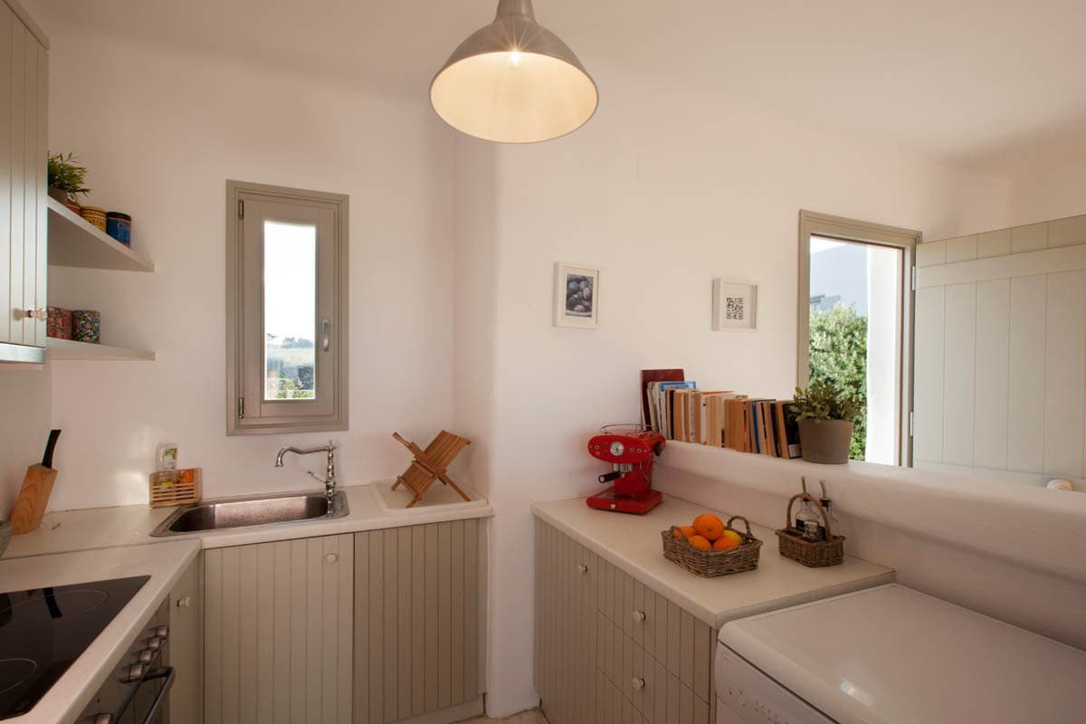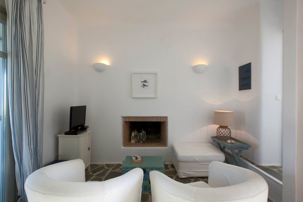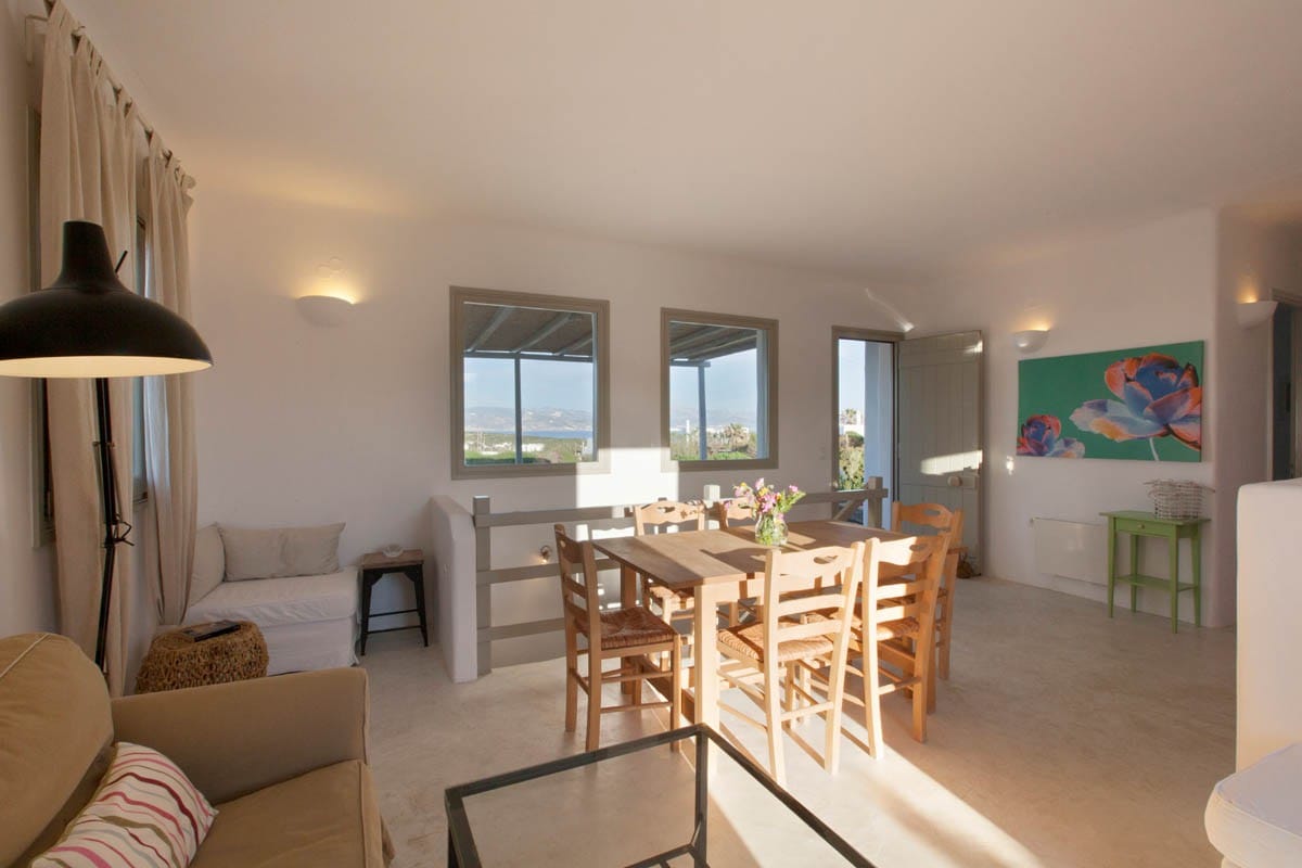 Le Kallisti Villas si trovano in una zona residenziale rurale ai margini delle spiagge protette di Santa Maria, sulla punta nord-est di Paros. Le baie di sabbia fine sono raggiungibili a piedi dalle ville (400 metri), tra cui la famosa spiaggia di surf di Santa Maria, la spiaggia di Mikri Santa con acque poco profonde ideali per i più piccoli (meglio di qualsiasi piscina), una scuola di immersioni subacquee, bar sulla spiaggia, taverne e un negozio di alimentari. Le taverne greche sono notoriamente accoglienti per le famiglie, ma gli ospiti possono anche gustare le specialità locali presso la villa telefonando per un cibo da asporto (dovrai ritirarlo tu stesso).