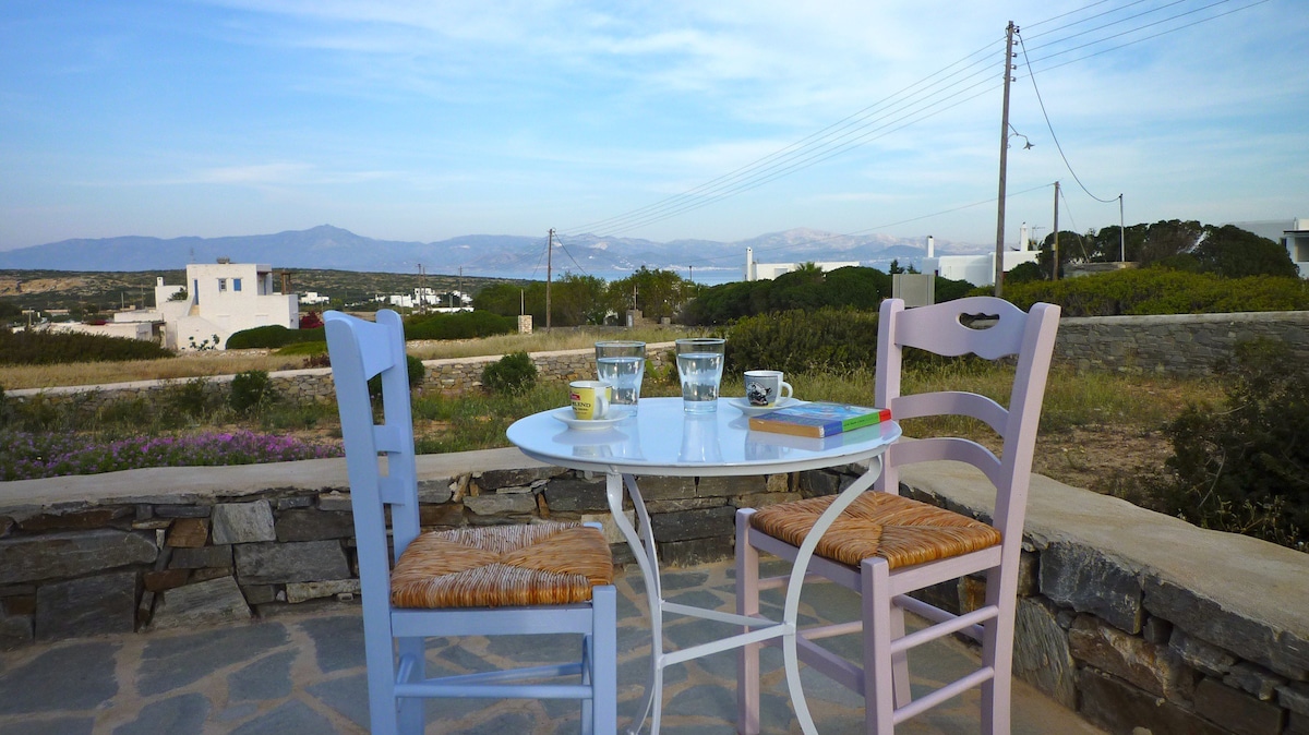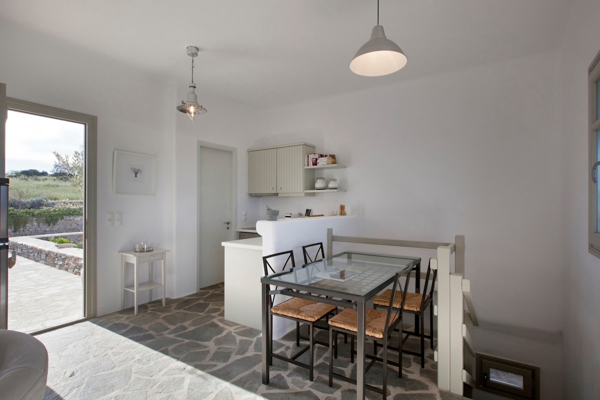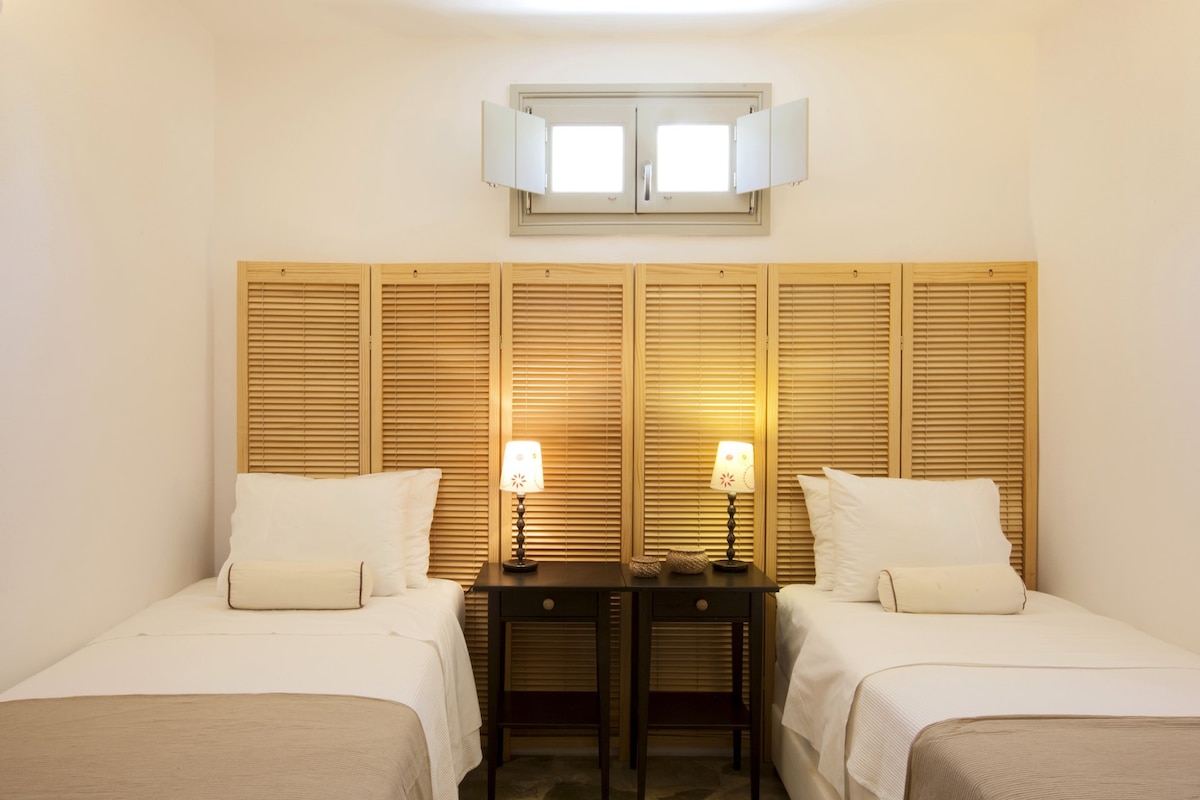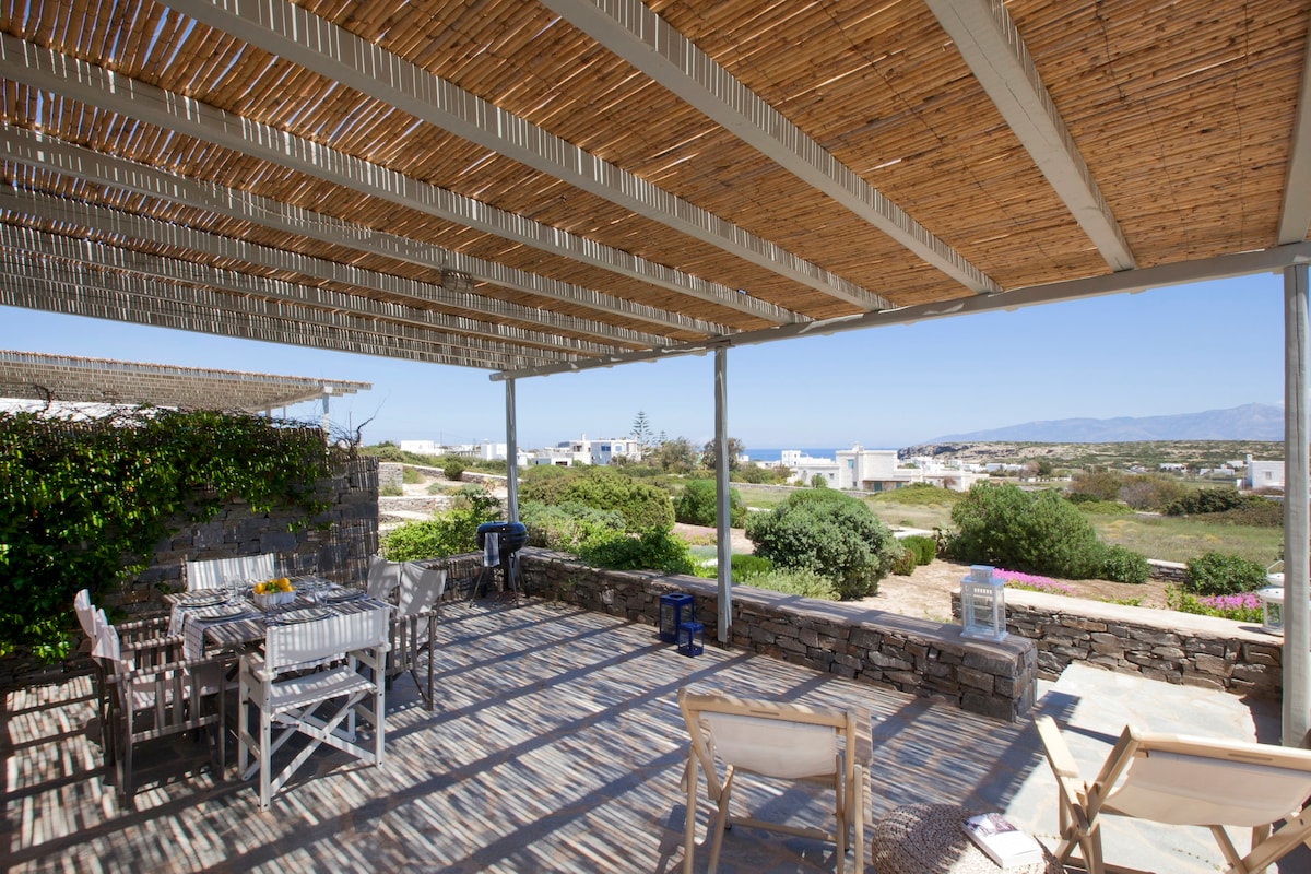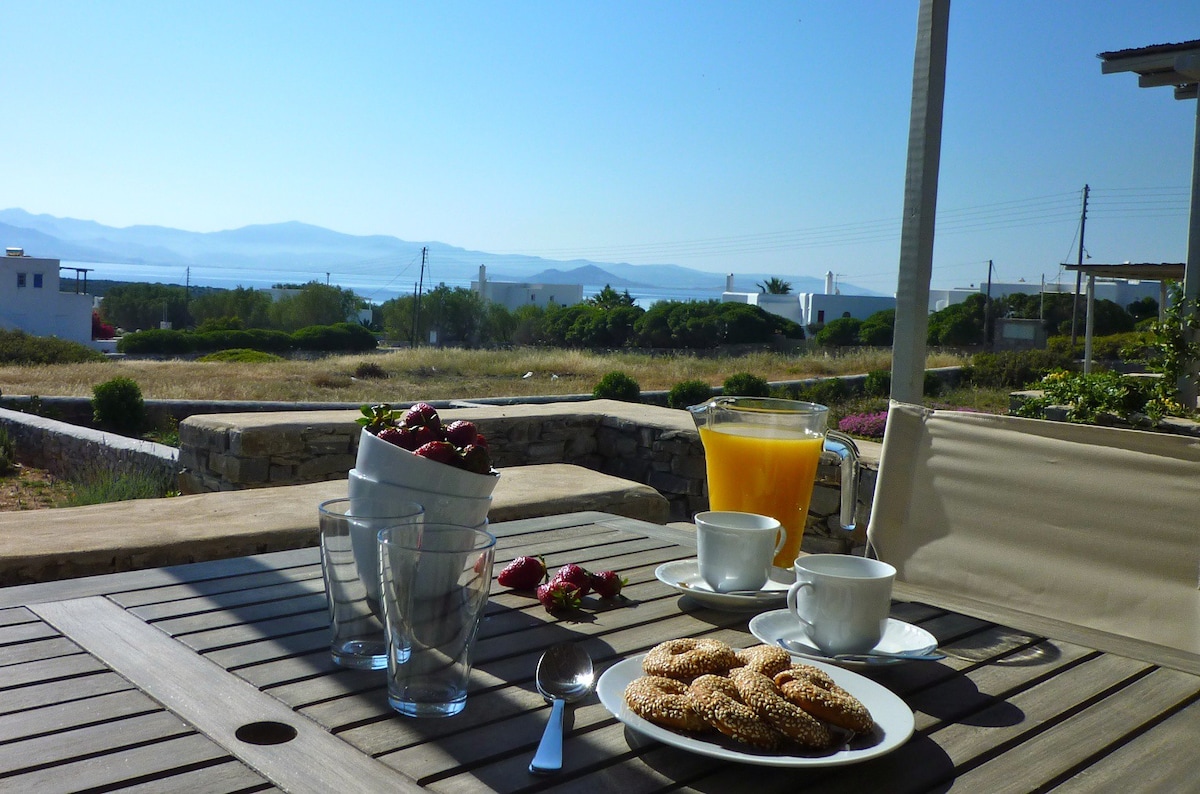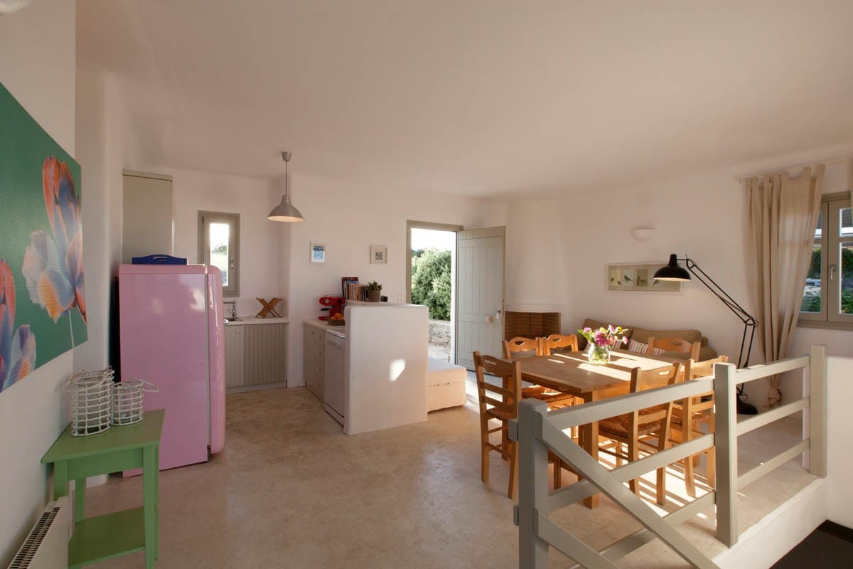 Le Kallisti Villas si trovano in una zona residenziale rurale ai margini delle spiagge protette di Santa Maria, sulla punta nord-est di Paros. Le baie di sabbia fine sono raggiungibili a piedi dalle ville (400 metri), tra cui la famosa spiaggia di surf di Santa Maria, la spiaggia di Mikri Santa con acque poco profonde ideali per i più piccoli (meglio di qualsiasi piscina), una scuola di immersioni subacquee, bar sulla spiaggia, taverne e un negozio di alimentari. Le taverne greche sono notoriamente accoglienti per le famiglie, ma gli ospiti possono anche gustare le specialità locali presso la villa telefonando per un cibo da asporto (dovrai ritirarlo tu stesso).