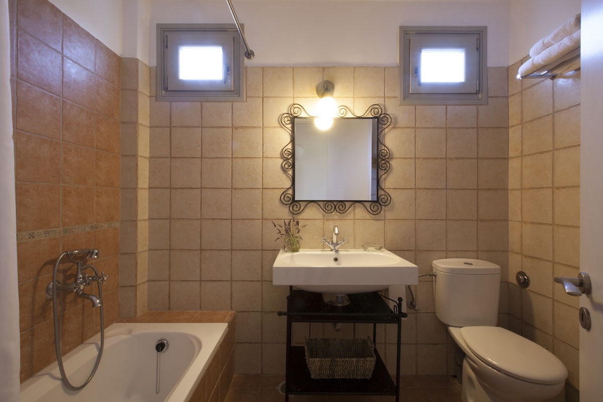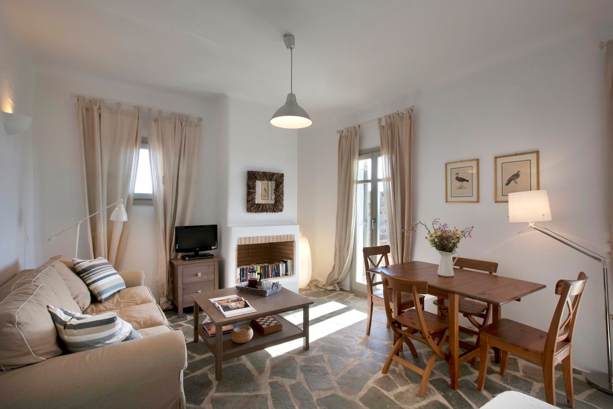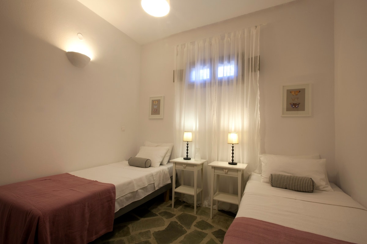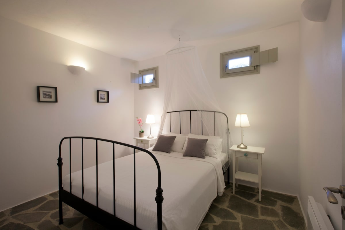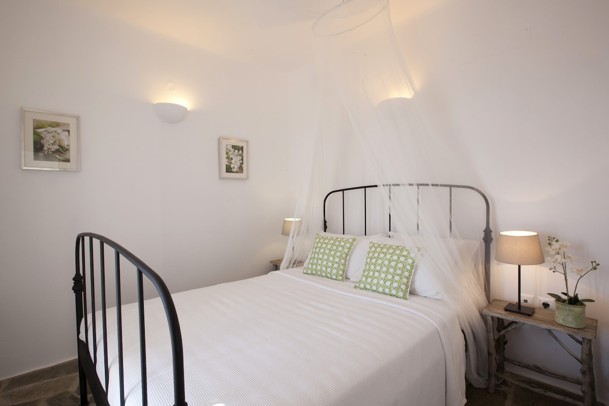 Le Kallisti Villas si trovano in una zona residenziale rurale ai margini delle spiagge protette di Santa Maria, sulla punta nord-est di Paros. Le baie di sabbia fine sono raggiungibili a piedi dalle ville (400 metri), tra cui la famosa spiaggia di surf di Santa Maria, la spiaggia di Mikri Santa con acque poco profonde ideali per i più piccoli (meglio di qualsiasi piscina), una scuola di immersioni subacquee, bar sulla spiaggia, taverne e un negozio di alimentari. Le taverne greche sono notoriamente accoglienti per le famiglie, ma gli ospiti possono anche gustare le specialità locali presso la villa telefonando per un cibo da asporto (dovrai ritirarlo tu stesso).