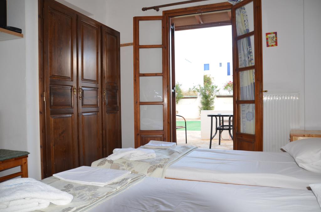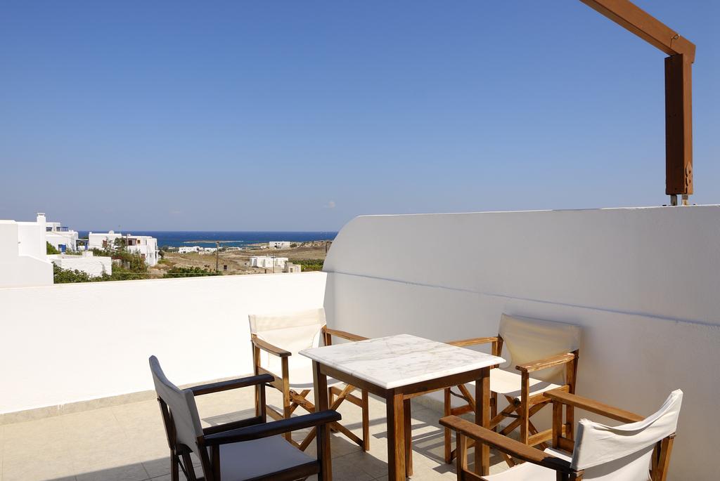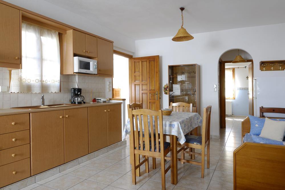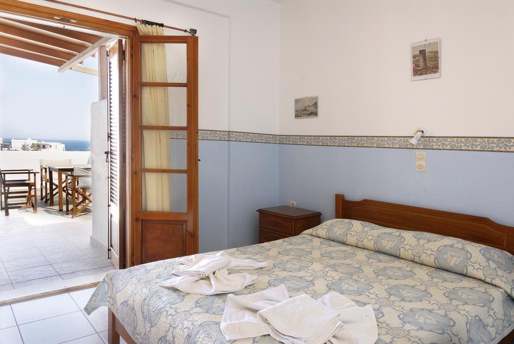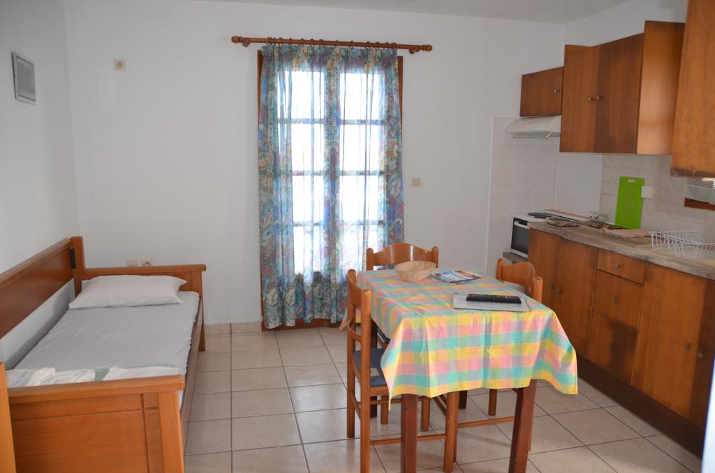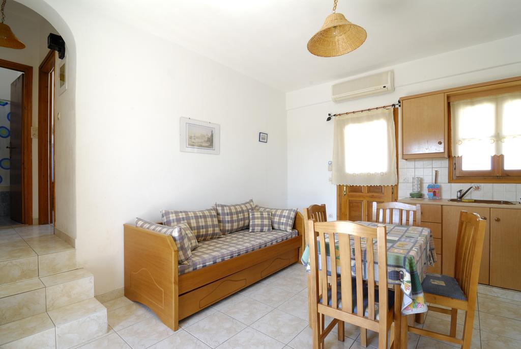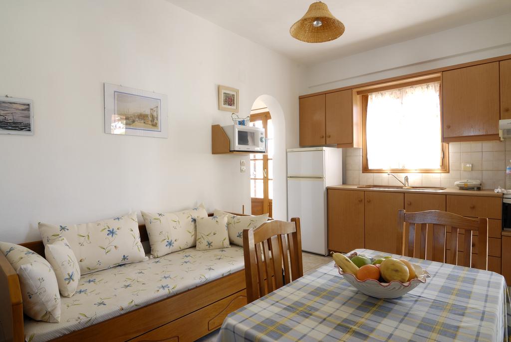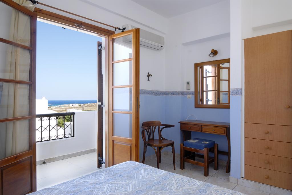 Tutti climatizzati e dotati di balcone privato con viste sul Mar Egeo o sul cortile ombreggiato con bougainvillea, gli appartamenti includono un angolo cottura completamente attrezzato con microonde, frigorifero e zona pranzo, una TV satellitare e un asciugacapelli.