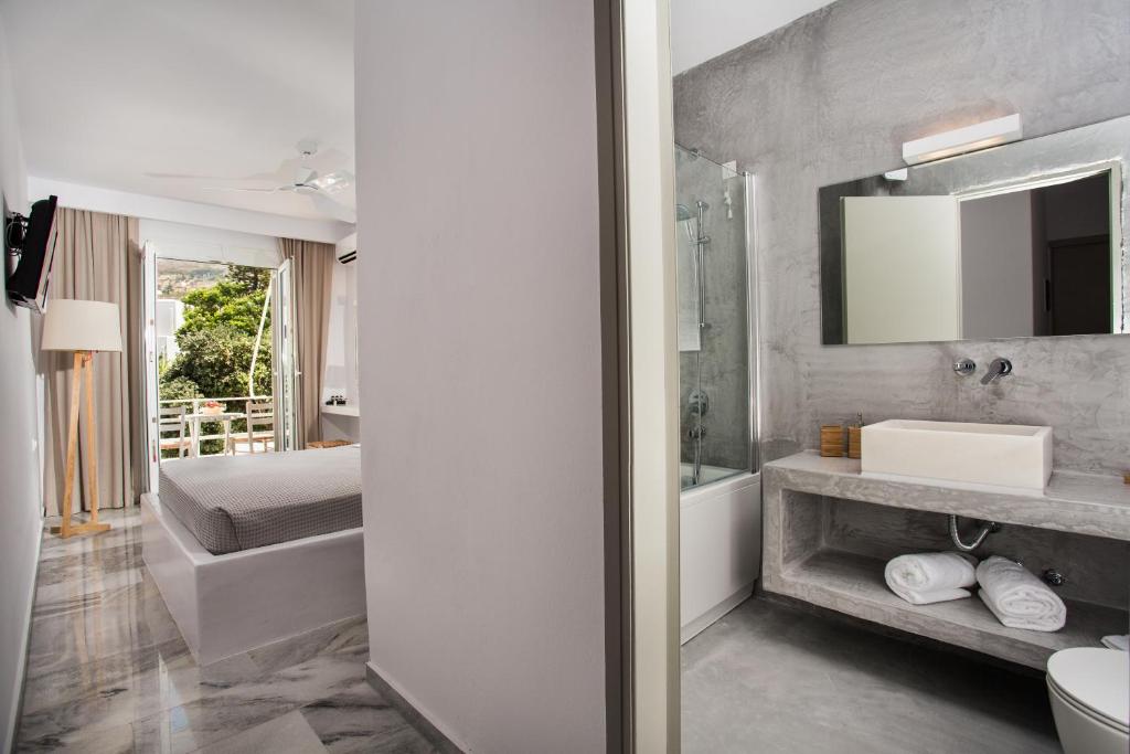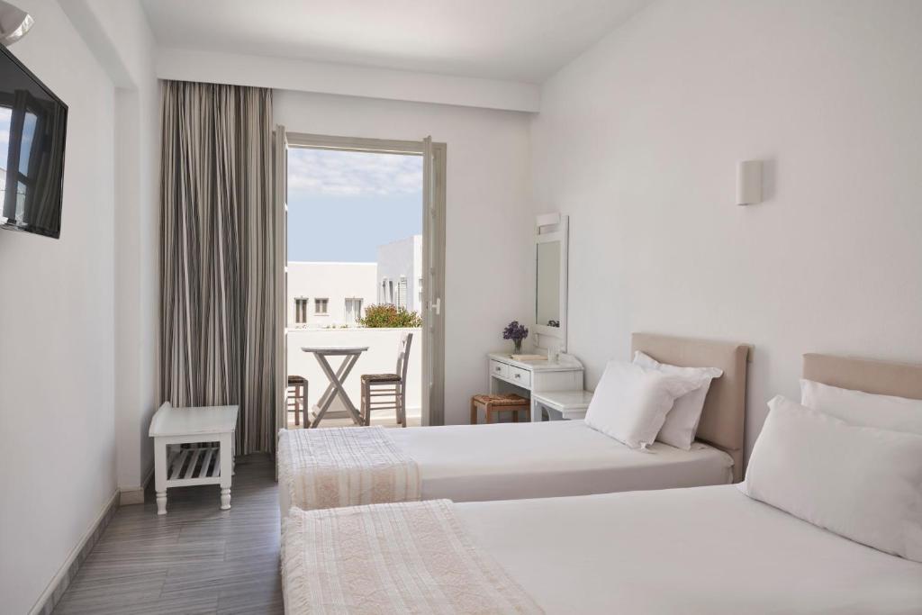 Presso l'Polos Hotel Paros troverete sistemazioni pulite e confortevoli e un servizio cordiale da parte del personale. Durante la giornata, potrete rilassarvi nel giardino che circonda la piscina all'aperto, prendere il sole o recarvi sulla spiaggia, a soli 50 metri di distanza.