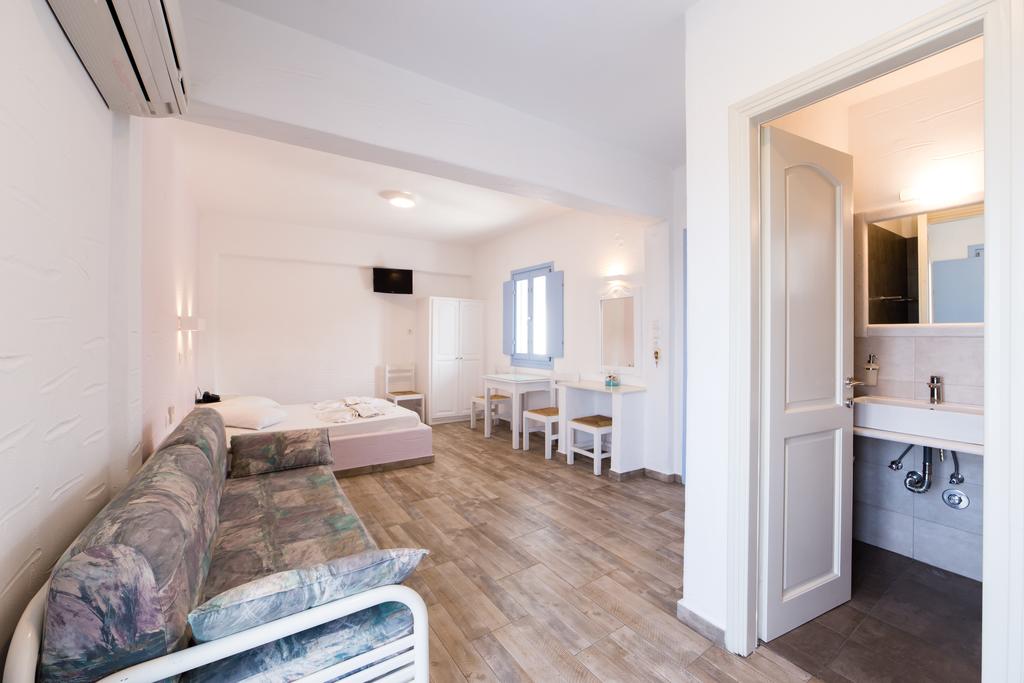 Raggiungerete i ristoranti e i bar di Parikia con una breve passeggiata e in 10 minuti la spiaggia di Souvlia. La fermata dell'autobus vicino all'hotel collega alle spiagge più popolari di Paros. Presso l'albergo non mancano il parcheggio gratuito e il servizio di noleggio di auto e moto.