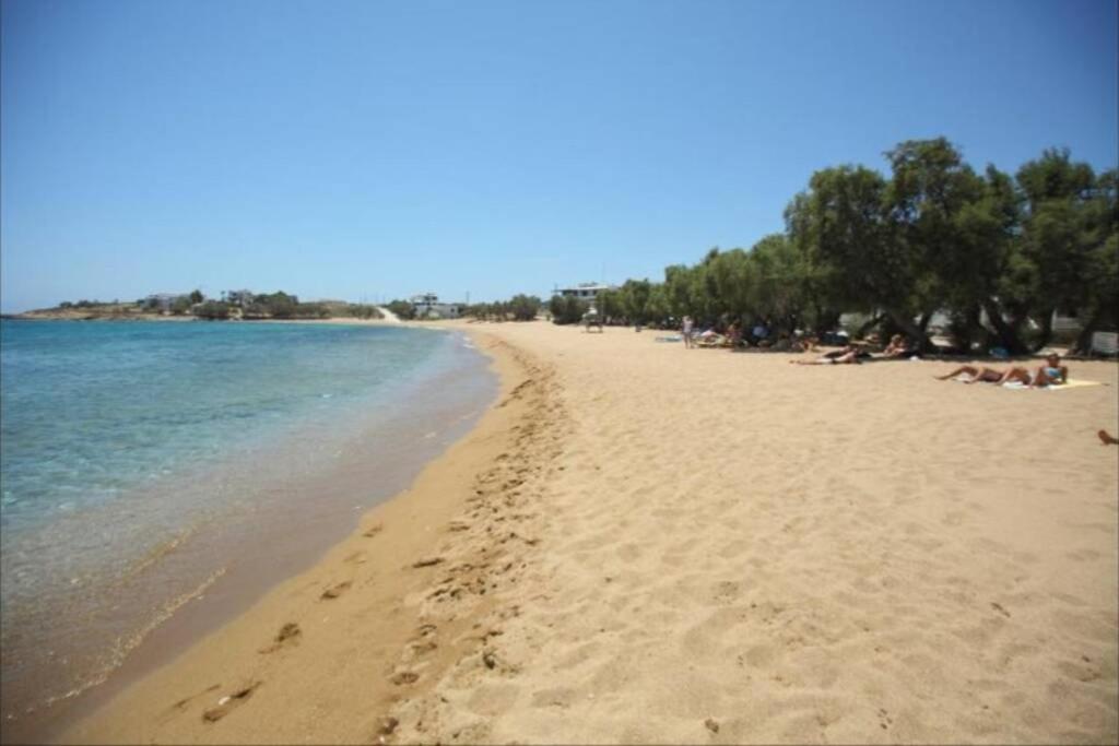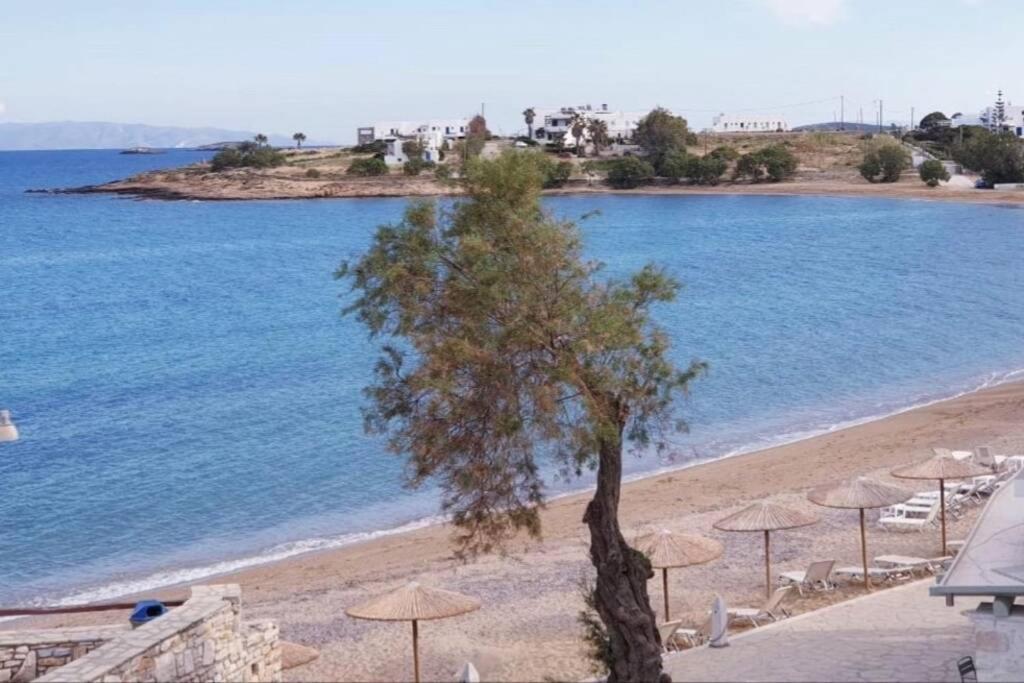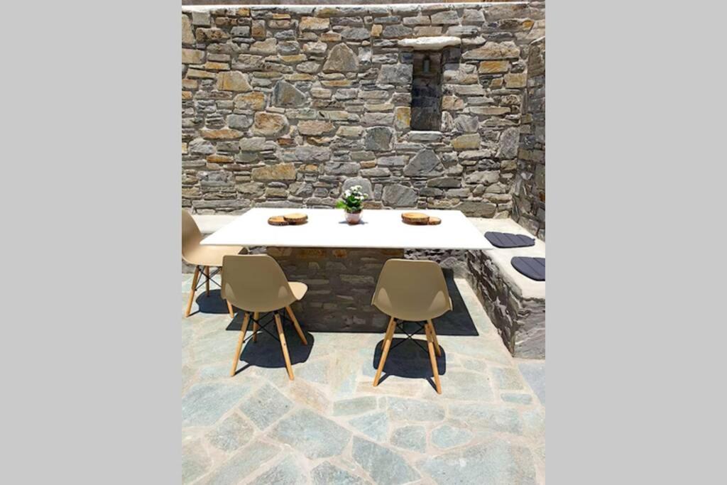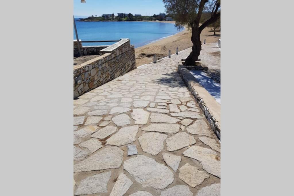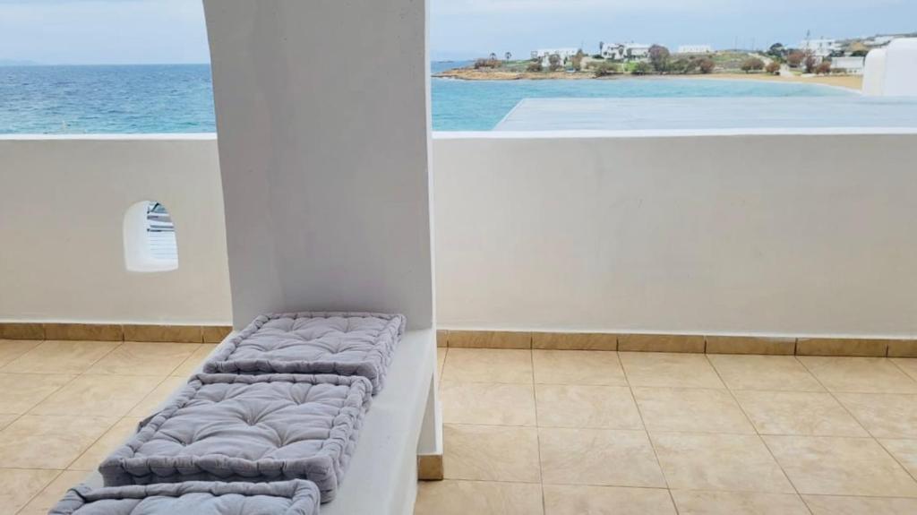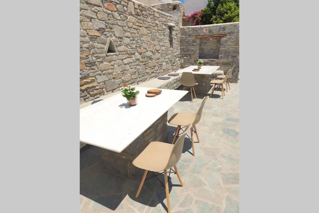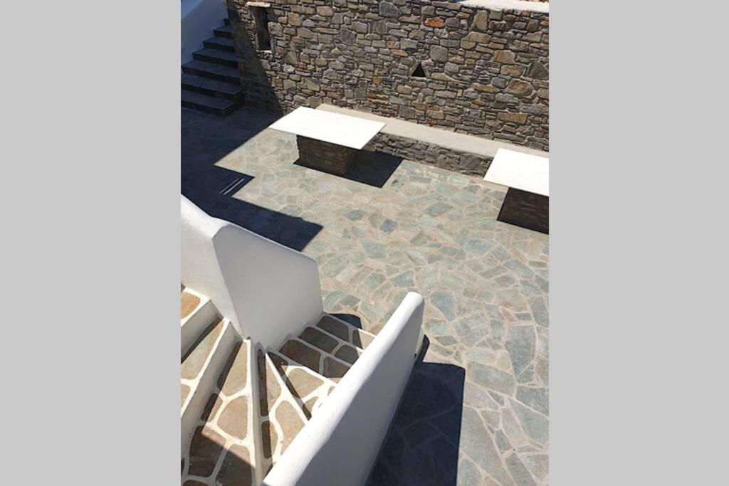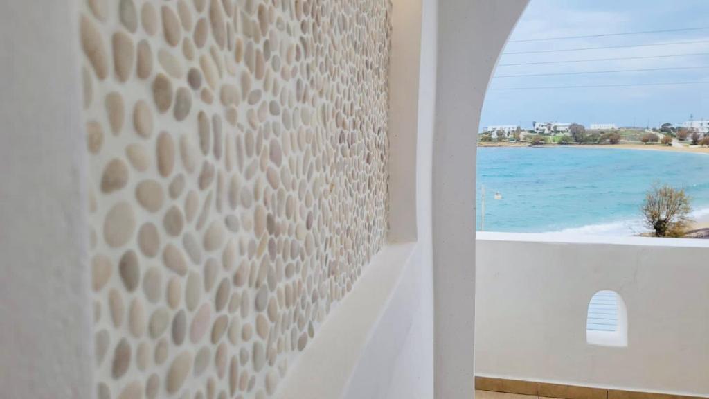 Il balcone frontale molto grande (40 mq) è perfetto per riunioni di amici o familiari, colazione, lettura di un libro, relax e soprattutto guardare il sole che sorge e tramonta sullo splendido mare Egeo proprio di fronte ai locali. Ha anche un grande tavolo da pranzo in marmo dove tutti gli ospiti possono riunirsi per pranzo e cena di fronte alla bellissima spiaggia di Logaras. Nel patio sul retro dei locali è possibile trovare tavoli e sedie dove è possibile rilassarsi e godersi il sole, nonché uno spazio per esercitarsi a cui è possibile accedere e condividere con altri ospiti HH. L'atmosfera ei grandi tavoli sono perfetti per pranzare/cenare lì, per fare lunghe discussioni o godersi una brezza notturna sotto le stelle. C'è una scala con 9 gradini che conduce all'ingresso dell'appartamento.