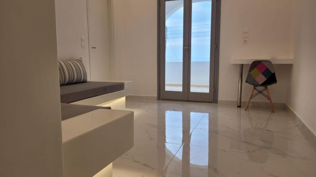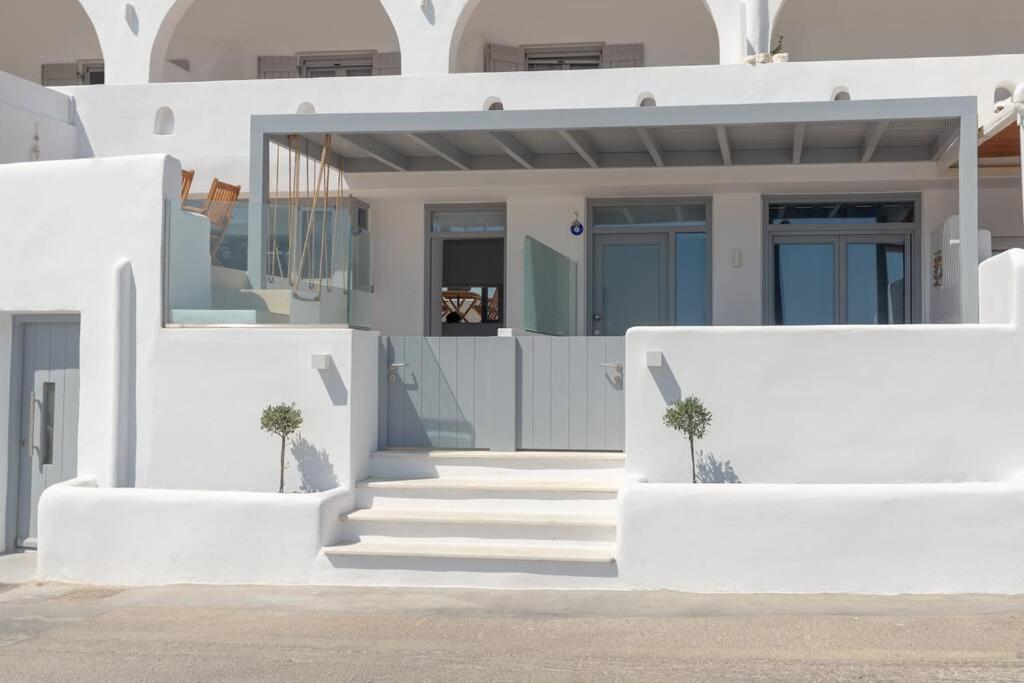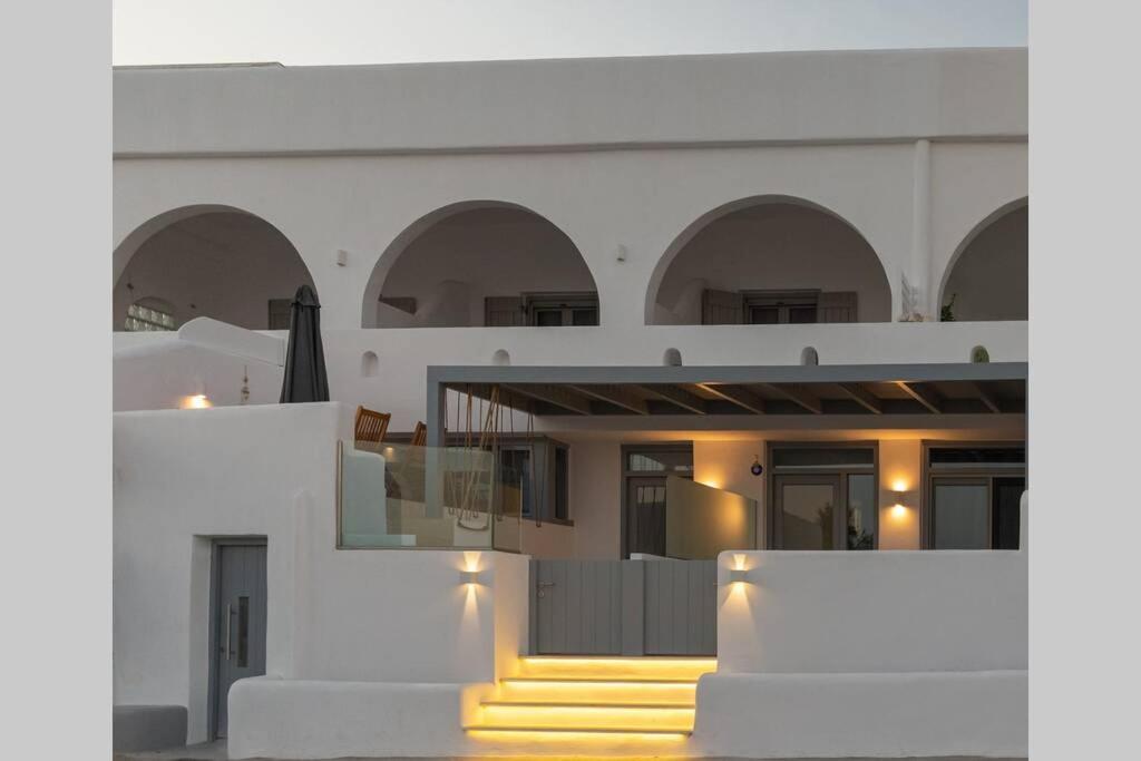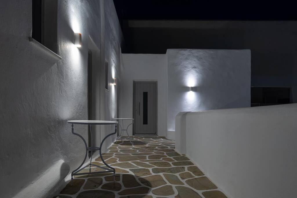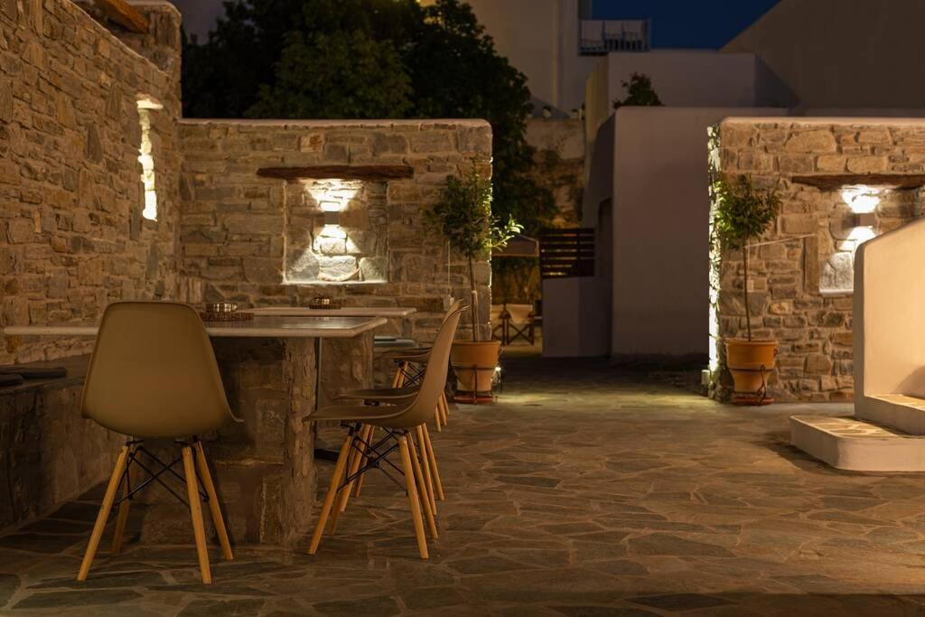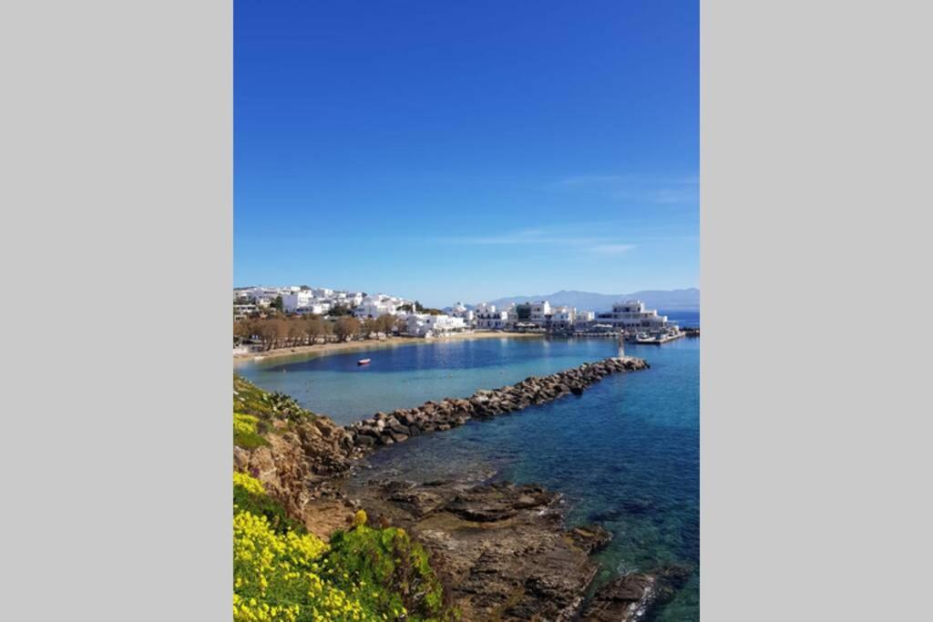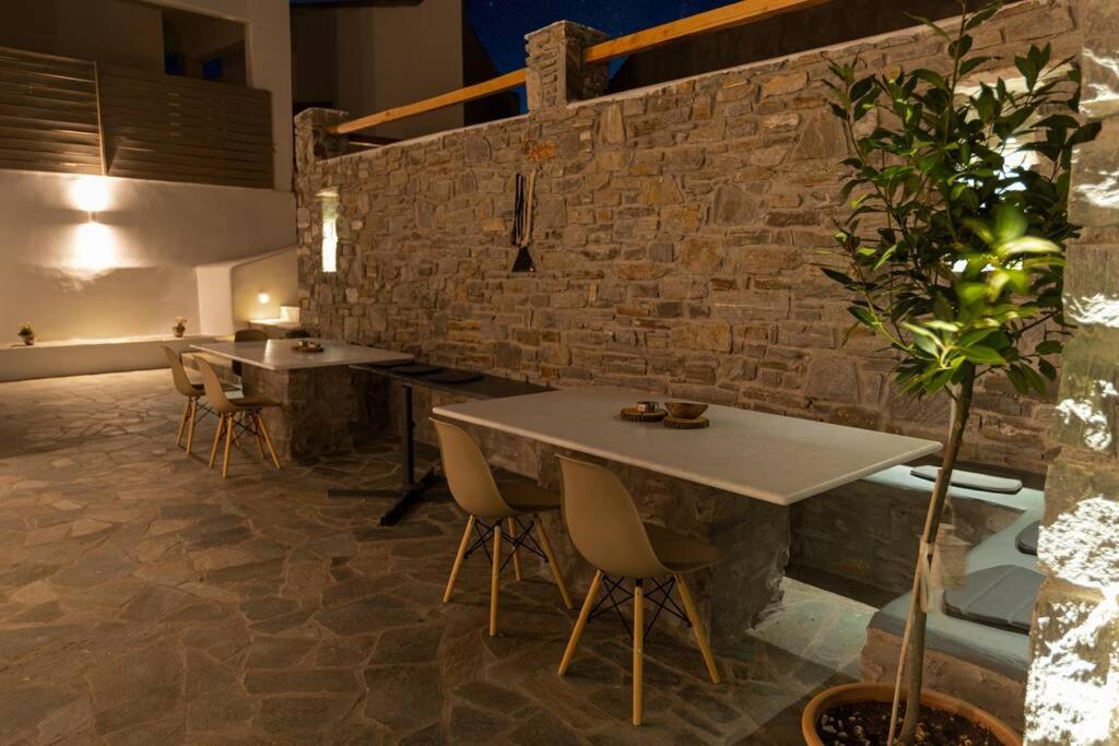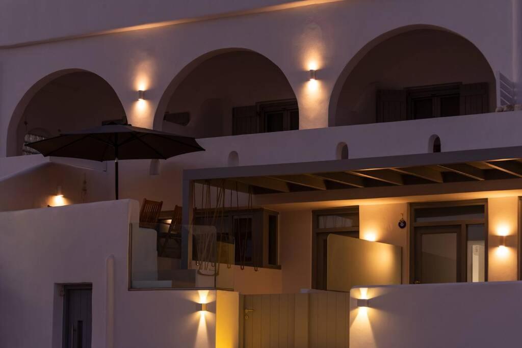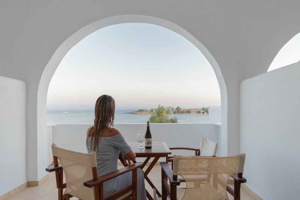 Il balcone frontale molto grande (40 mq) è perfetto per riunioni di amici o familiari, colazione, lettura di un libro, relax e soprattutto guardare il sole che sorge e tramonta sullo splendido mare Egeo proprio di fronte ai locali. Ha anche un grande tavolo da pranzo in marmo dove tutti gli ospiti possono riunirsi per pranzo e cena di fronte alla bellissima spiaggia di Logaras. Nel patio sul retro dei locali è possibile trovare tavoli e sedie dove è possibile rilassarsi e godersi il sole, nonché uno spazio per esercitarsi a cui è possibile accedere e condividere con altri ospiti HH. L'atmosfera ei grandi tavoli sono perfetti per pranzare/cenare lì, per fare lunghe discussioni o godersi una brezza notturna sotto le stelle. C'è una scala con 9 gradini che conduce all'ingresso dell'appartamento.